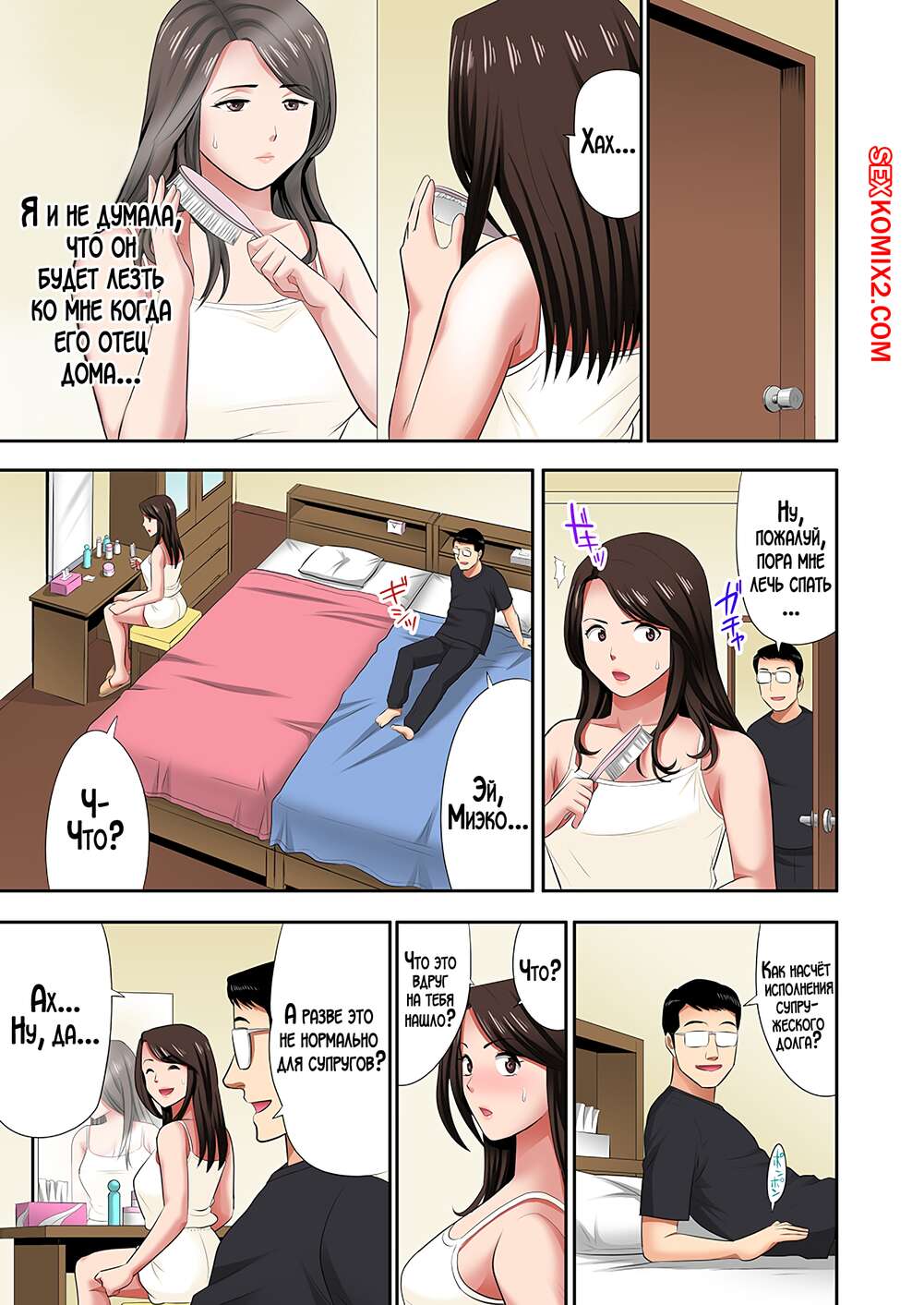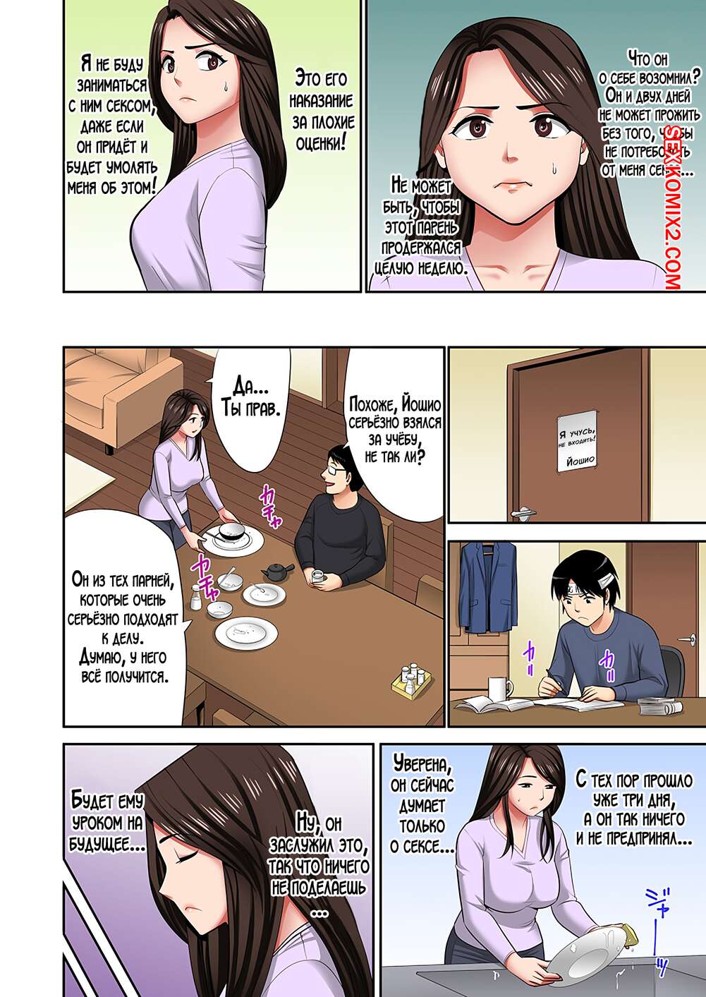 Порно комикс Я выбрал женщину для интим услуг, а ею оказалась моя мама. Часть 2. Edogawa Roman Молодой парень продолжает наслаждаться телом своей шикарной мамочки. Он раздевает красотку и возбуждает ее своими ласками, после чего трахает ее своим большим членом.
