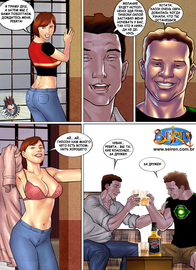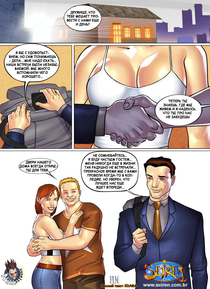Порно комикс «Хорошие времена или 15 лет спустя». В этом эро комиксе вы увидите встречу двух старых друзей, и один предложил другому переночевать у него дома. Второй друг согласился и позже узнал, что у него есть жена и она очень сексуальная девушка. Как оказалось жена очень развратна, и ночью она отдалась старому другу своего мужа.