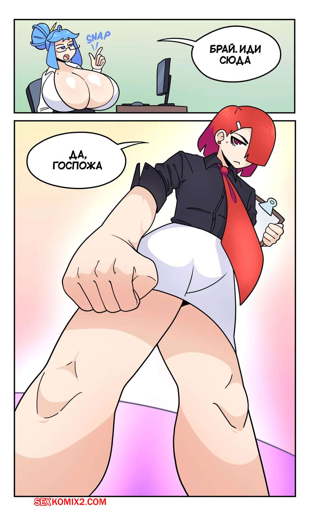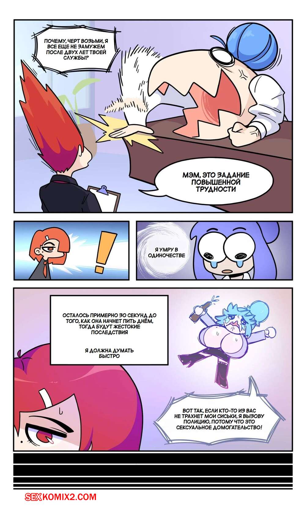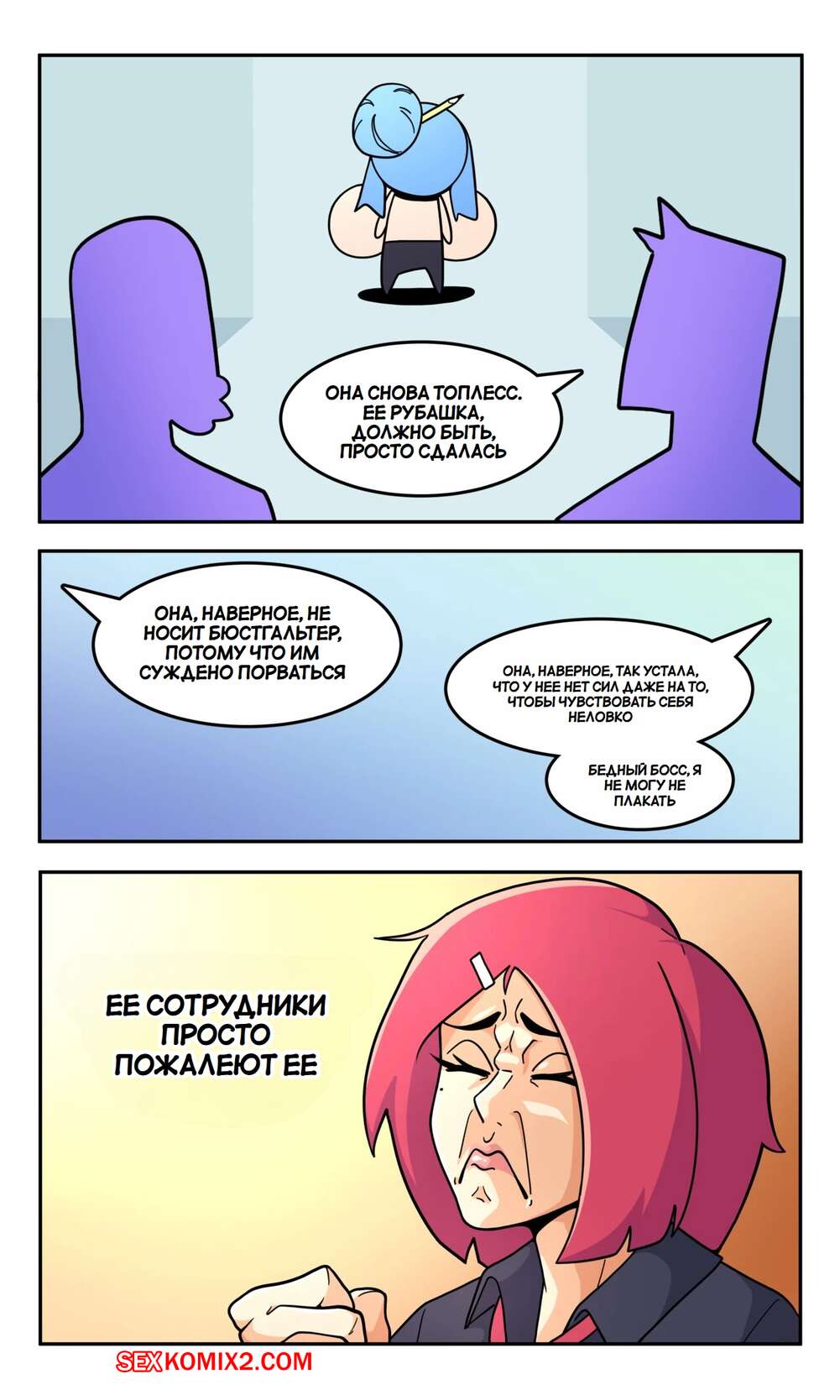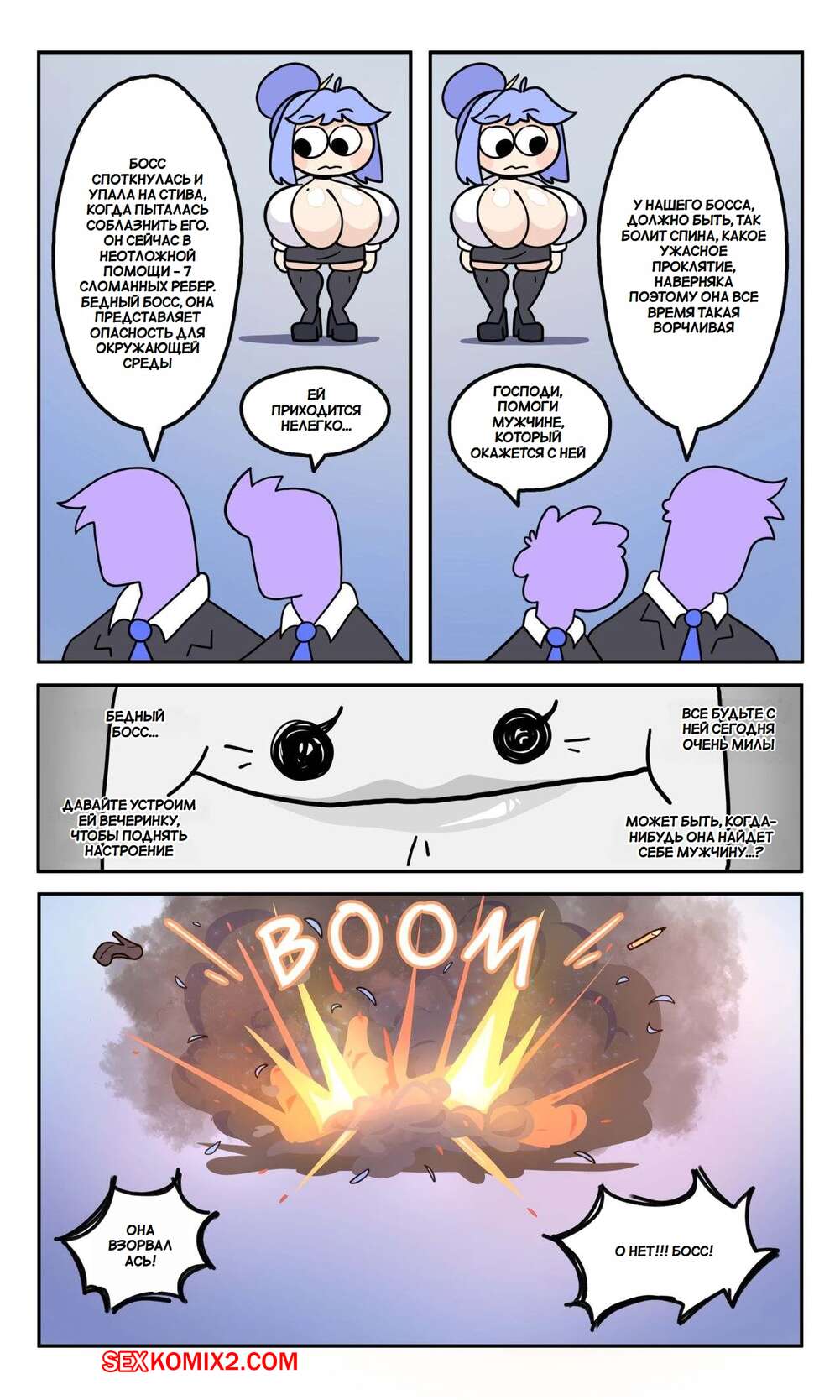 Порно комикс Мисс Би слишком большая. Miss B is Too Big. BobberKyu Горячая красотка работает в офисе и является боссом. У девушки огромные сиськи, которые привлекают внимание всех ее сотрудников. В офисе они думают совсем не о работе.