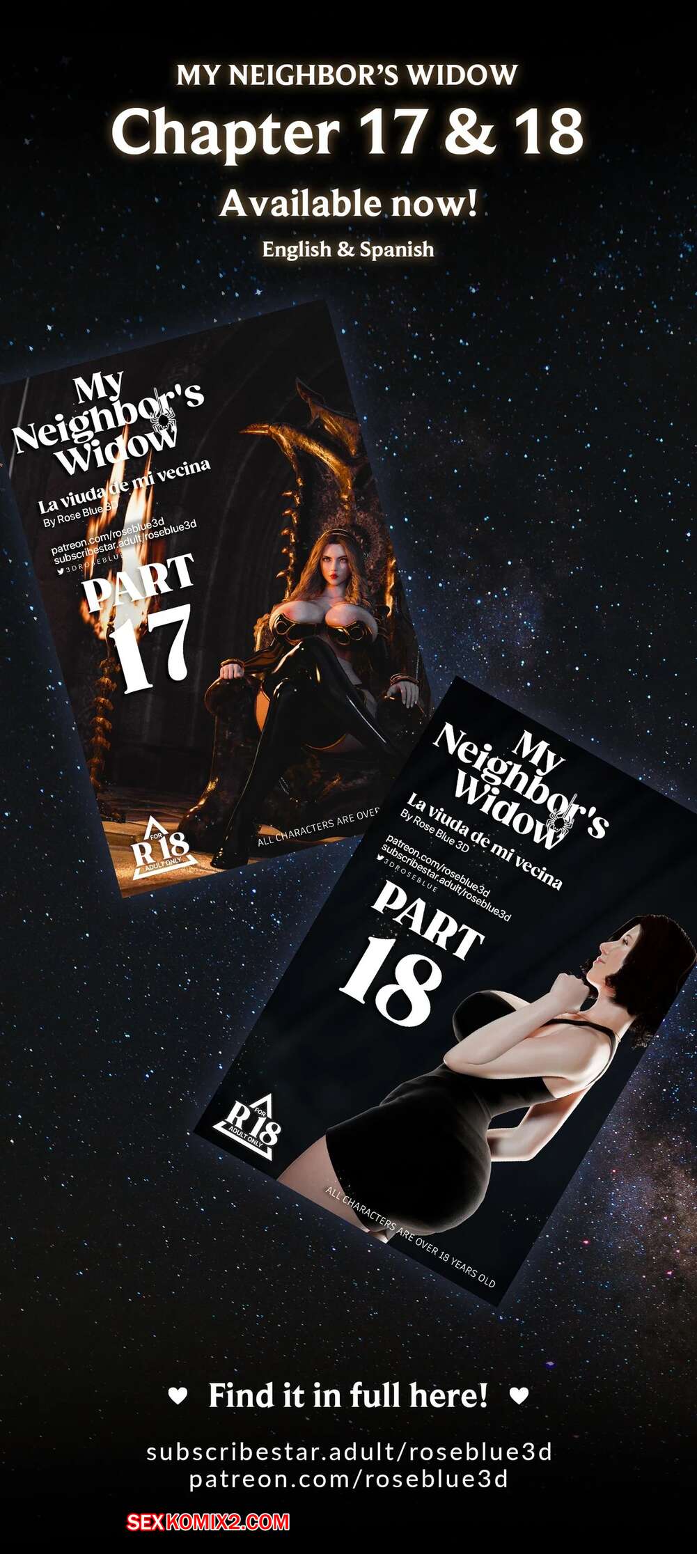 Порно комикс Моя соседская вдова. Часть 2. My Neighbors Widow. Rose Blue 3D