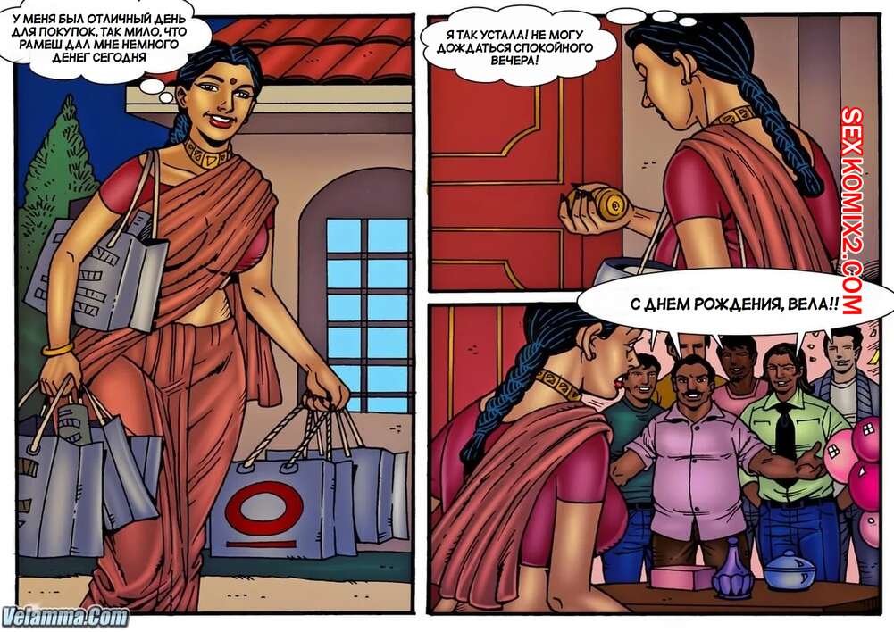 Порно комикс Сны Веламмы. Часть 9. Velamma Dreams. Kirtu Сисястая брюнетка милфа была очень возбуждена и решила повеселиться со своими дружками. Девушка разделась и отсосала большие хуи парней, после чего дала им себя выебать.