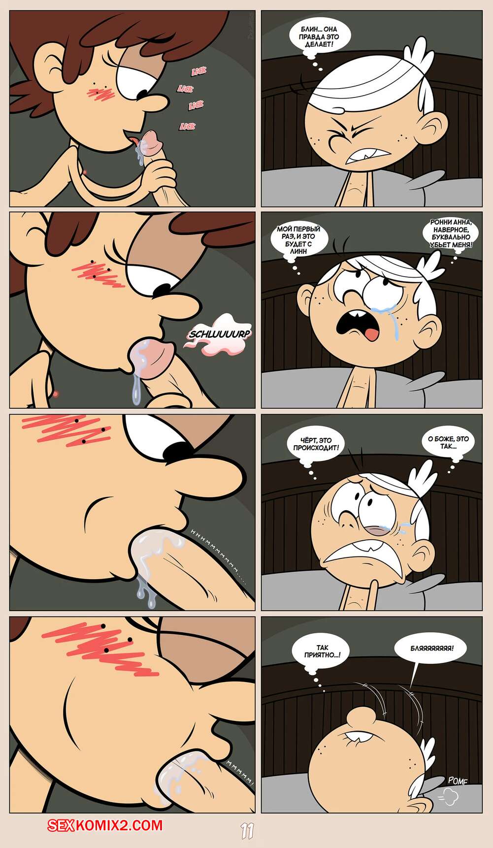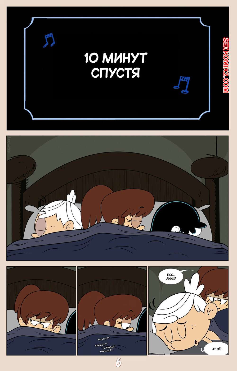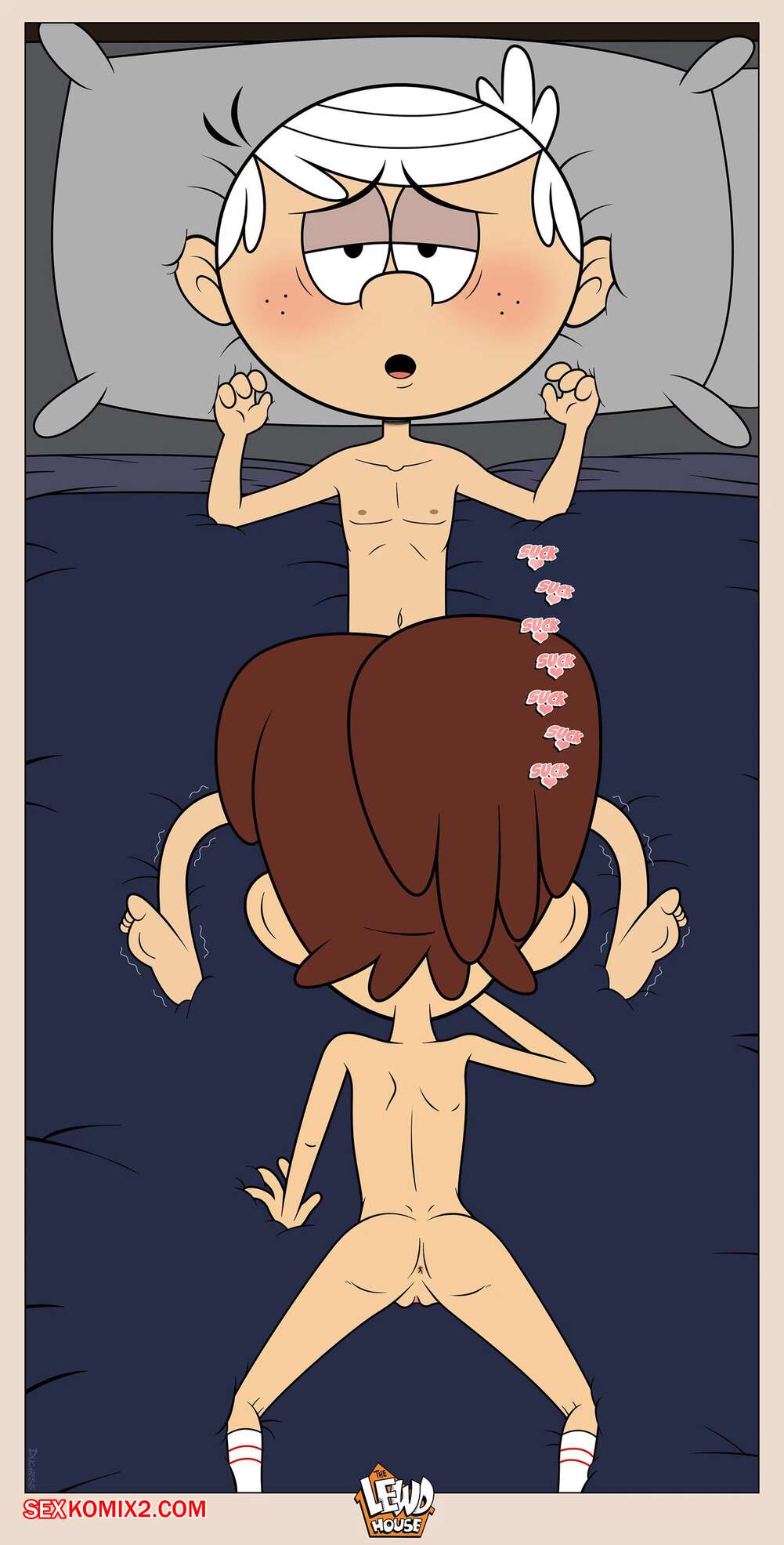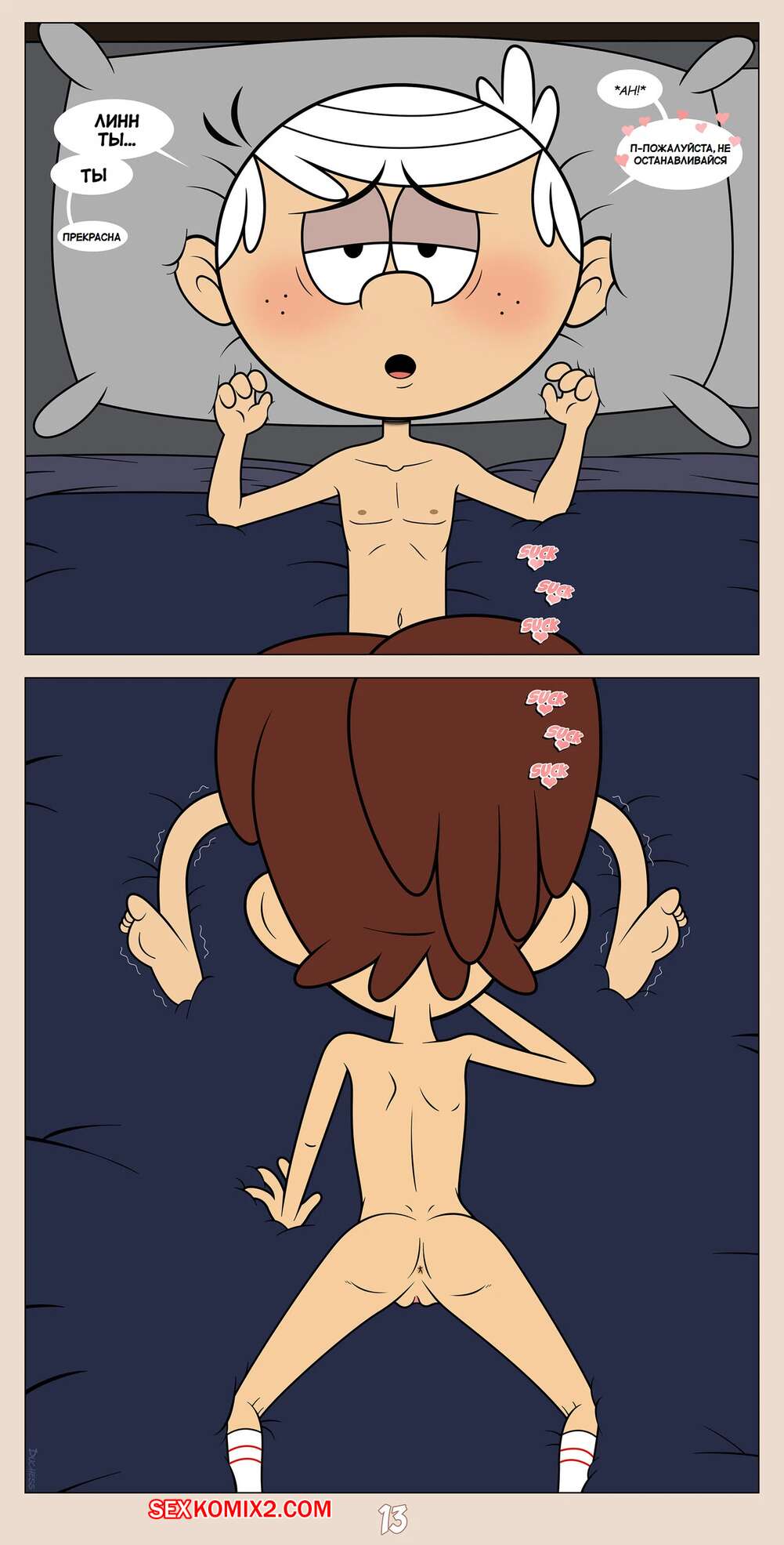 Порно комикс Шумный дом. Герцогиня Космические захватчики. Часть 2. Эпилог. Duchess Space Invaders Горячая брюнетка легла спать вместе со своим дружком Линкольном и решила с ним повеселиться. Девушка достала хуй парня и стала его отсасывать, но Линкольн не сдержался и кончил в ротик подруге.