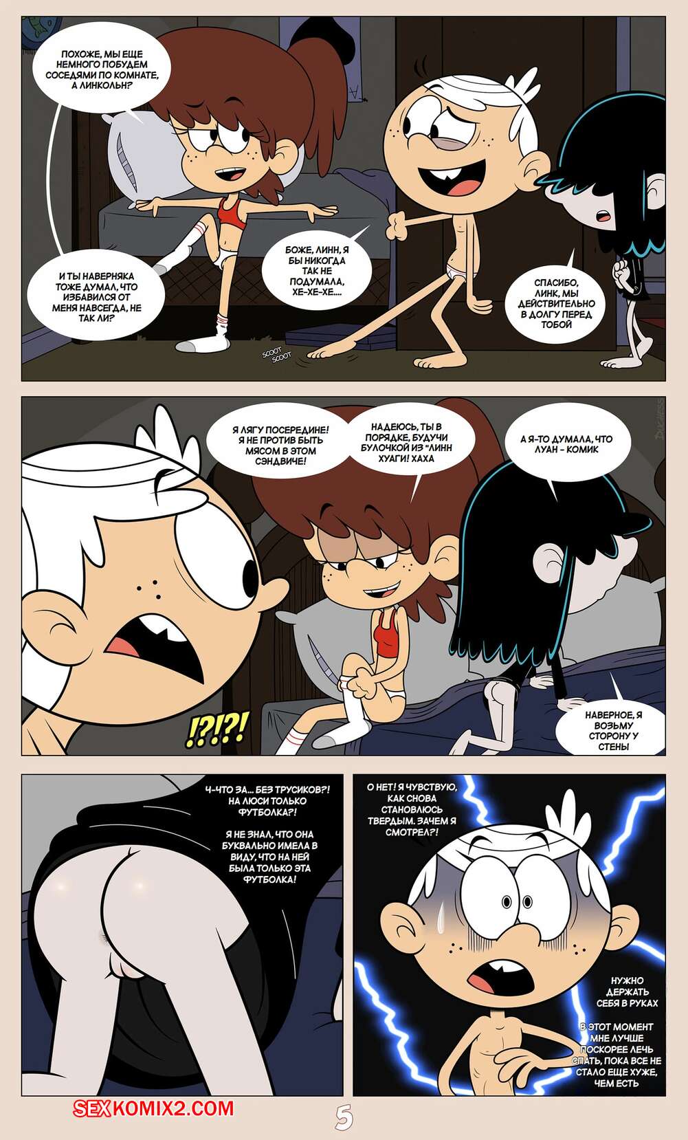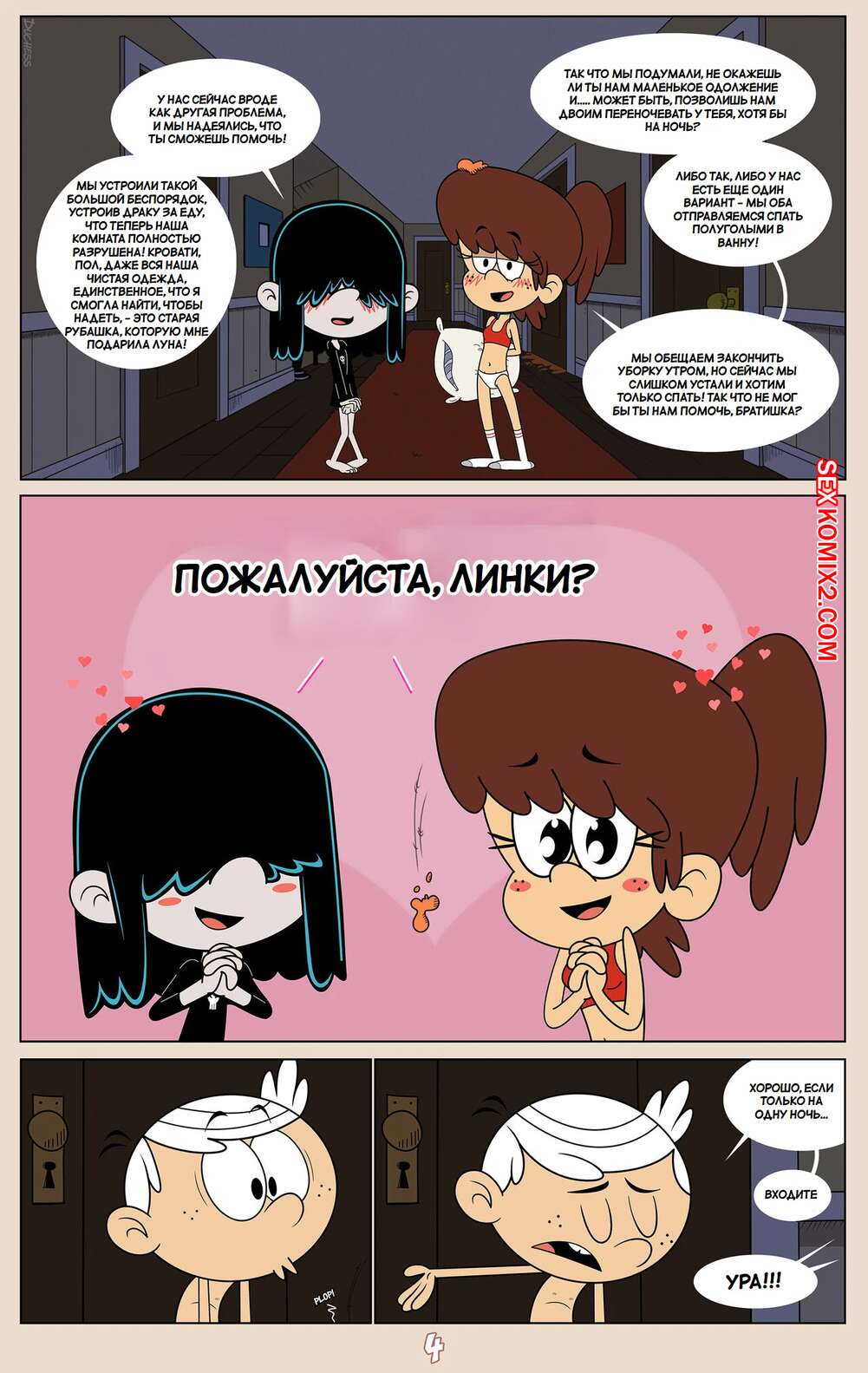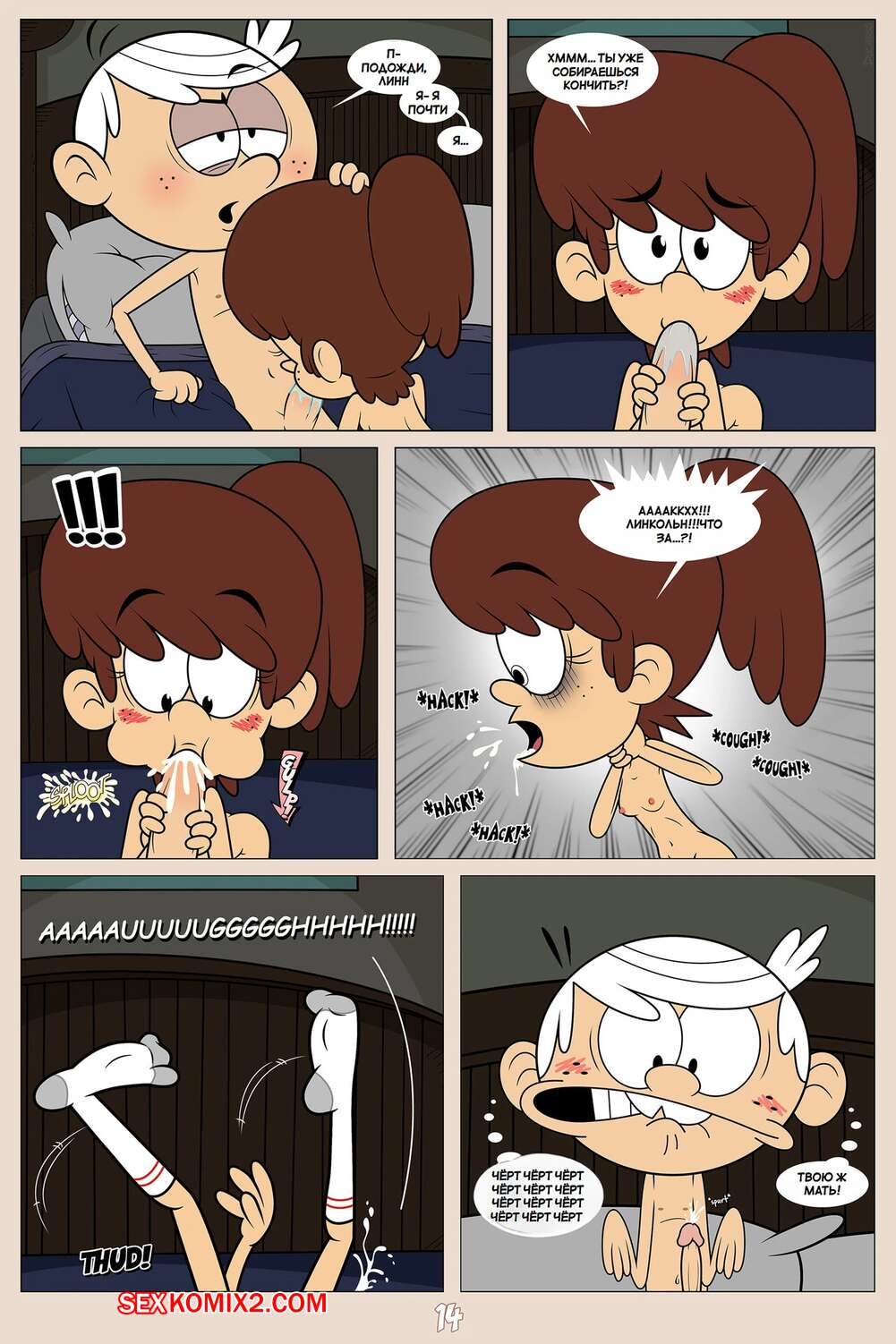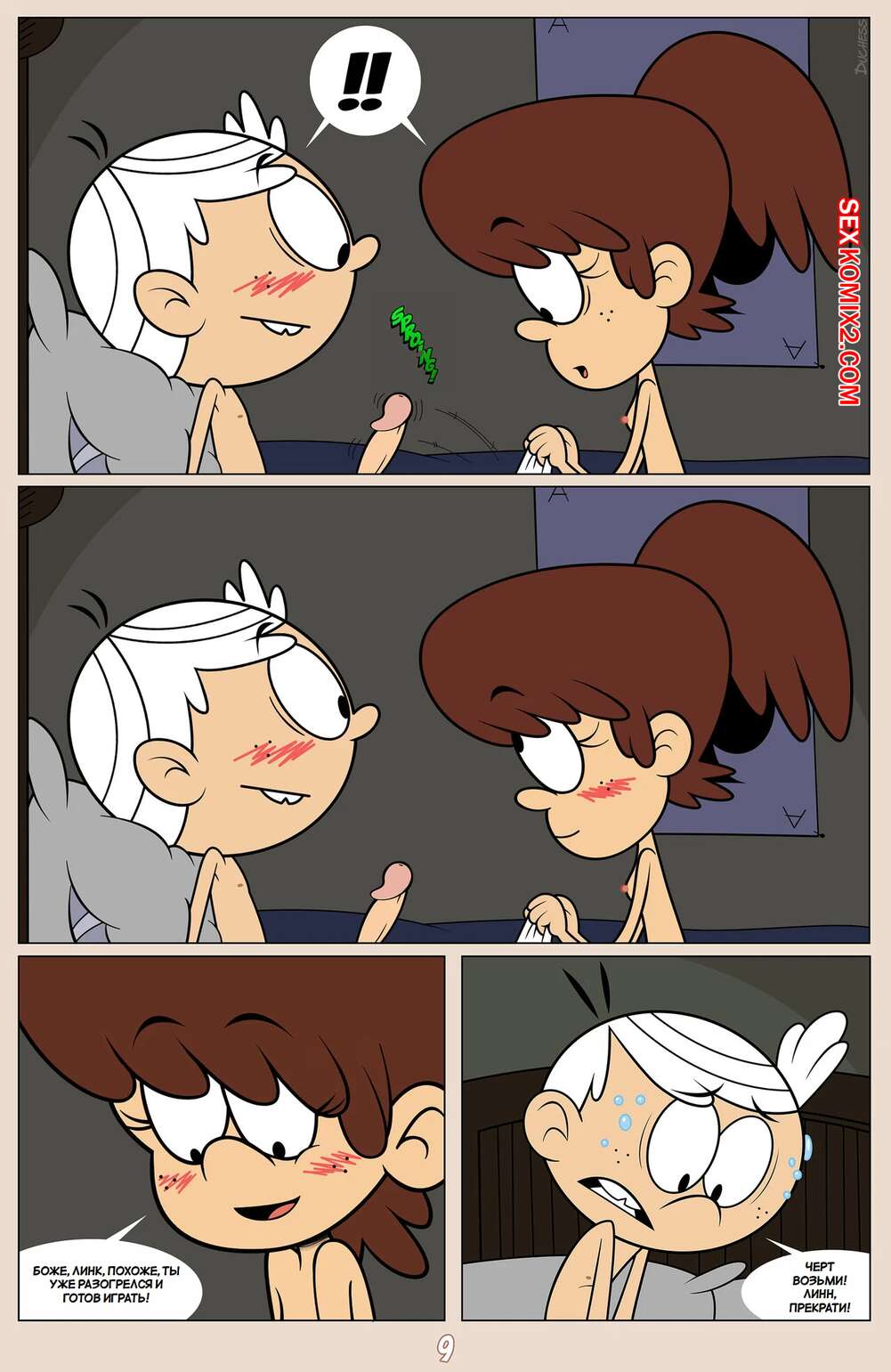 Порно комикс Шумный дом. Герцогиня Космические захватчики. Часть 2. Эпилог. Duchess Space Invaders Горячая брюнетка легла спать вместе со своим дружком Линкольном и решила с ним повеселиться. Девушка достала хуй парня и стала его отсасывать, но Линкольн не сдержался и кончил в ротик подруге.