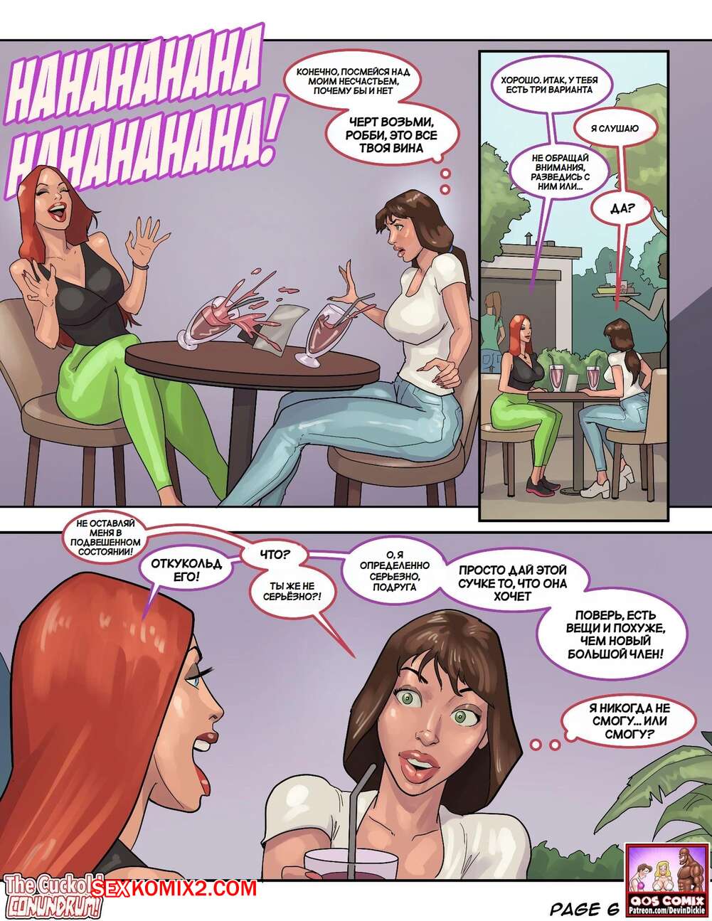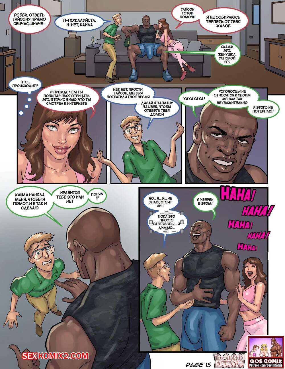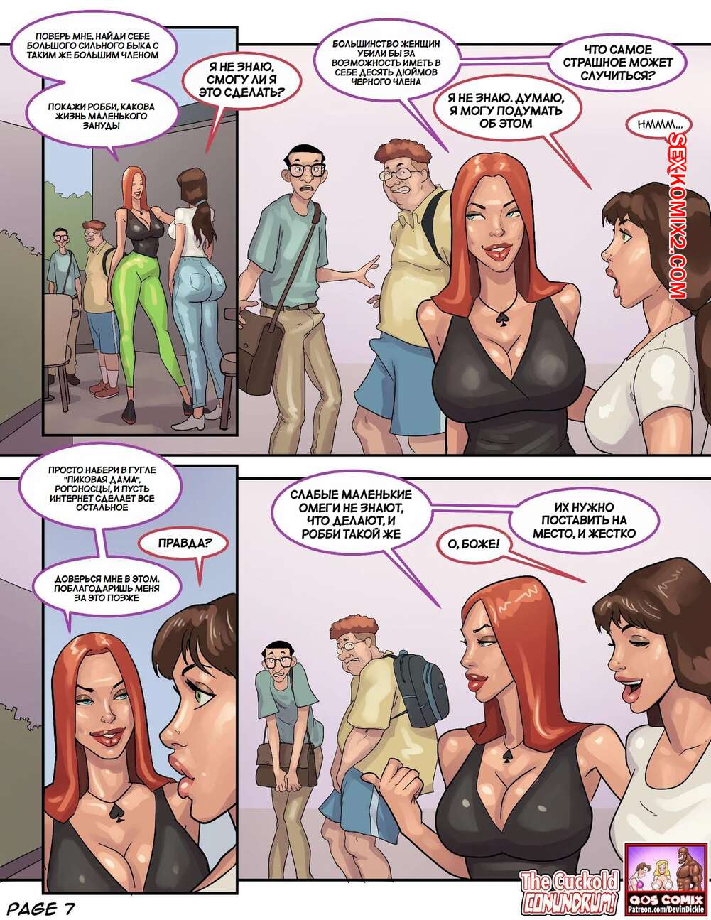 Порно комикс Загадка рогоносца. The Cuckold Conundrum Горячая милфа недовольна сексом со своим мужем, поэтому она решила повеселиться с темнокожим парнем. Красотка нарядила мужа в девушку, после чего они все занялись групповой еблей.