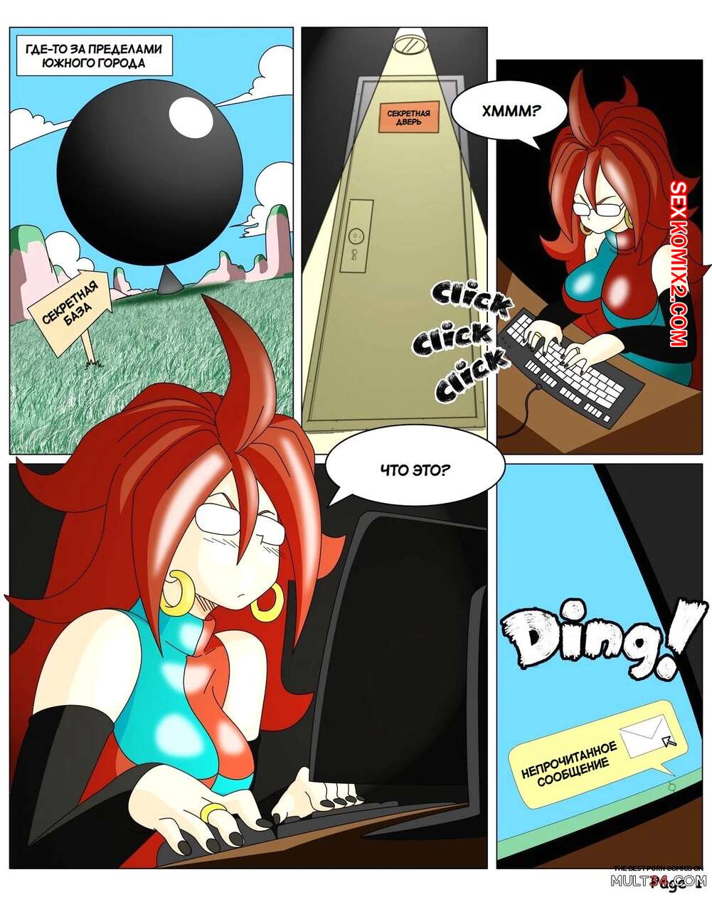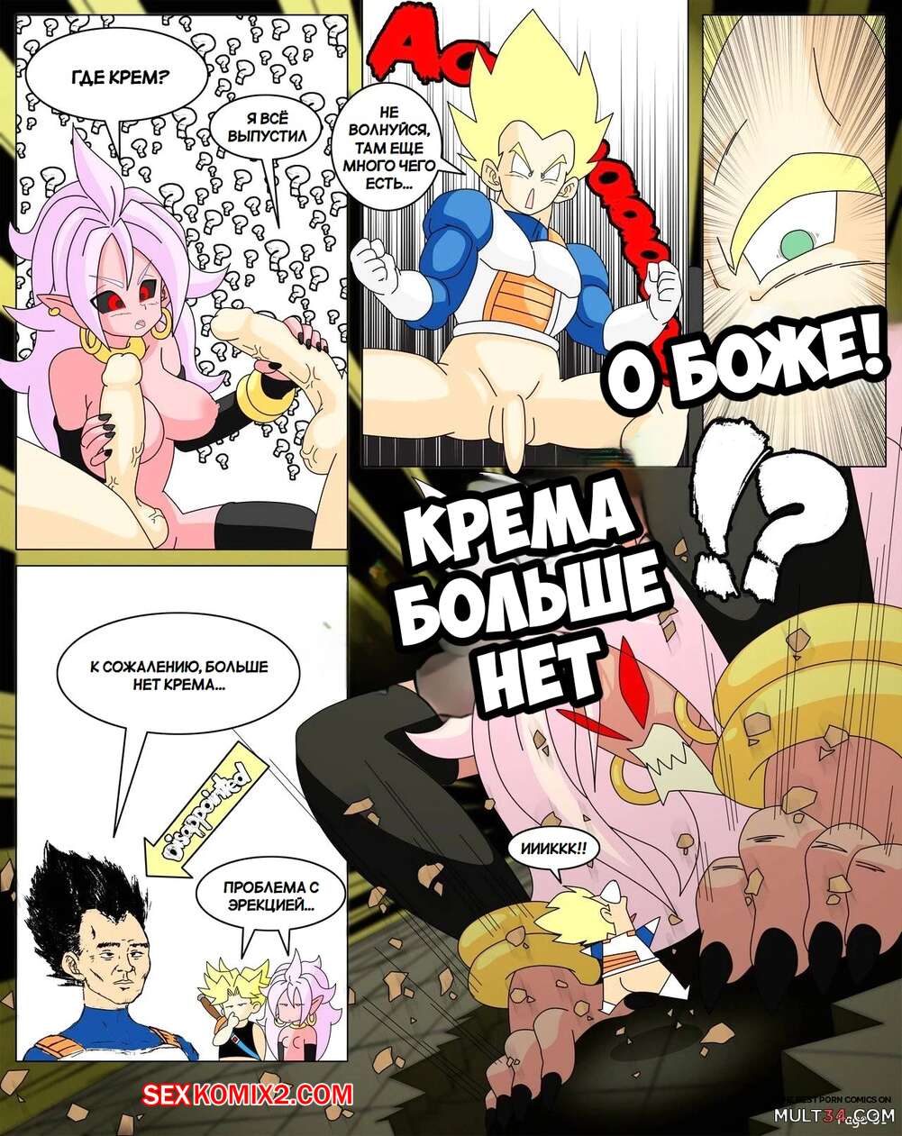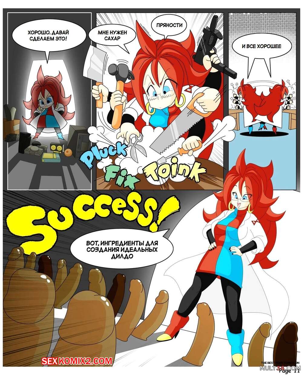 Порно комикс Dragon Ball. Сага Андроид 21. Yamete Android 21 Saga Горячая красотка была очень возбуждена и хотела трахаться. Она разделась и стала ласкать свою пизденку с помощью дилдо, после чего к ней присоединились два парня и выебали ее во все дырочки.