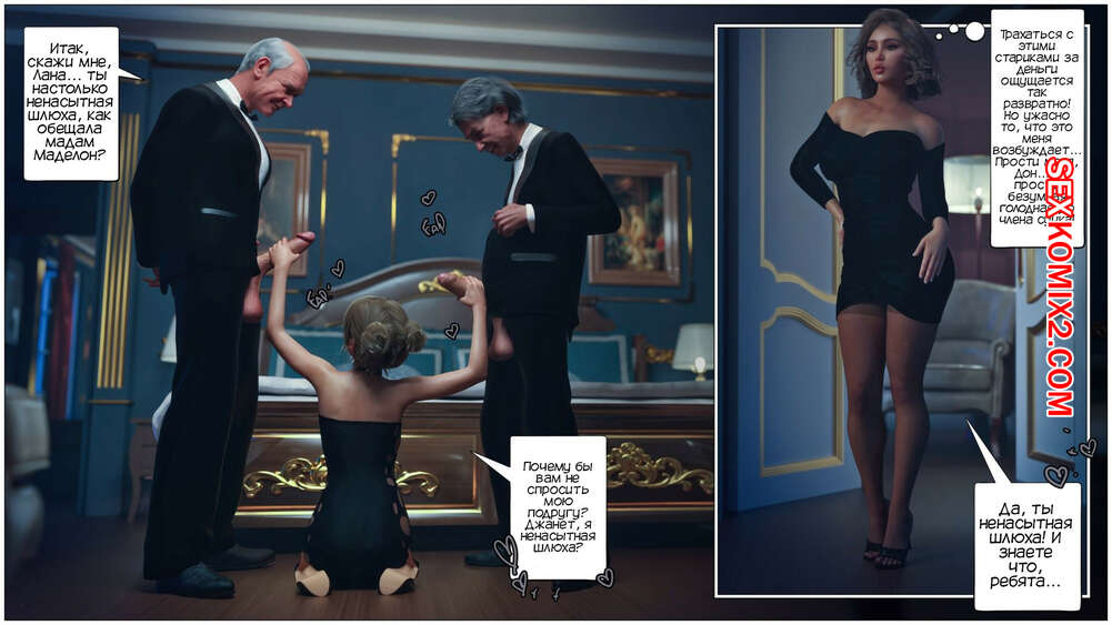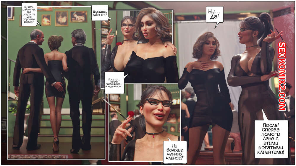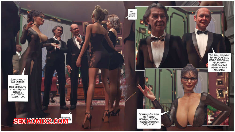 Порно комикс Дом мадам Маделон. Часть 2. The House of Madam Madelon. Tab109 Джанет и Лана отправилась на вечеринку по приглашению мадам Маделон. Там девушки уединились с двумя богатыми стариками, чтобы как следует удовлетворить их сексуальные потребности.