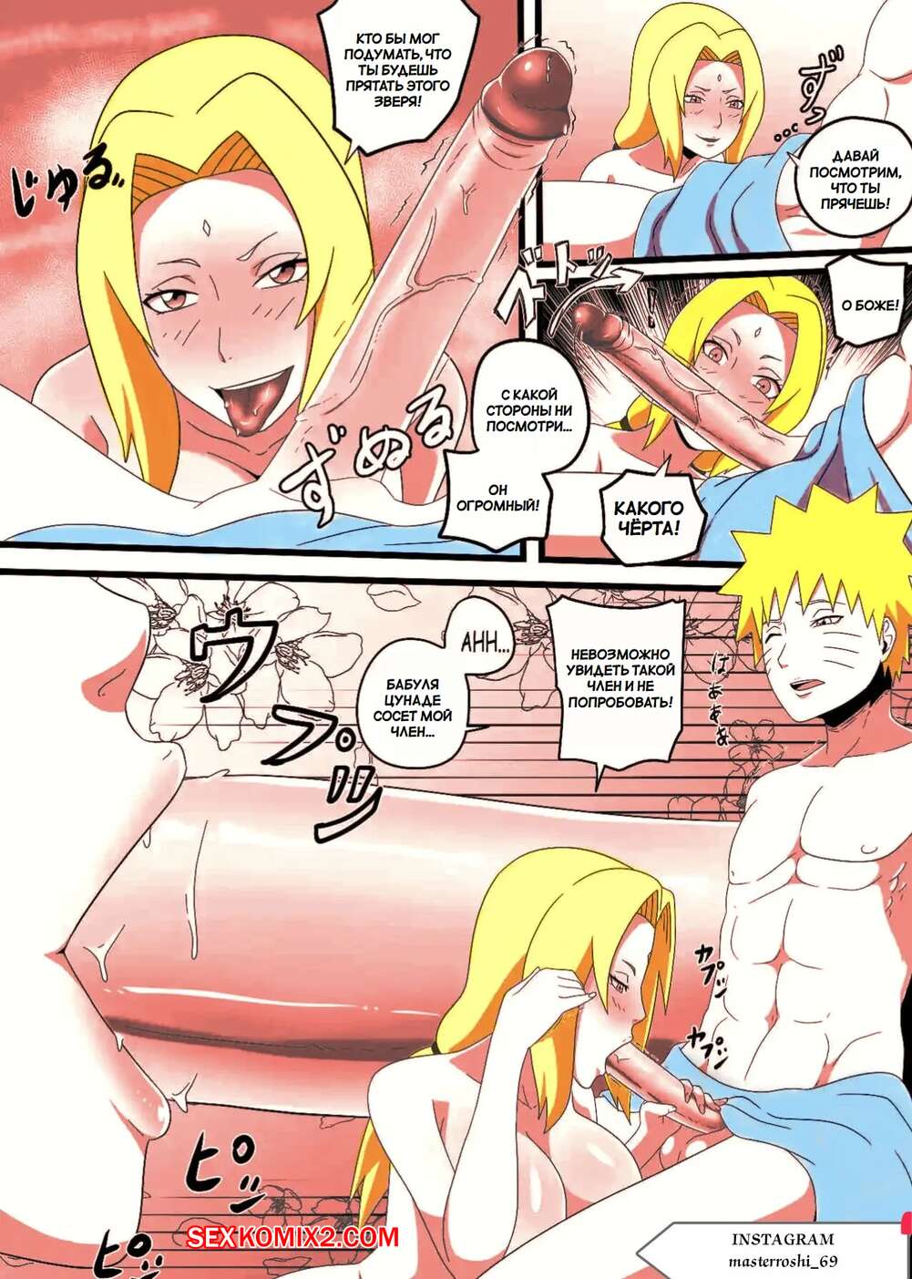 Порно комикс Наруто. Роман на горячих источниках Наруто и Тсунаде. Часть 1 Во время отдыха на горячих источниках Тсунаде возбудилась и решила повеселиться с Наруто. Милфа отсосала большой хуй парня, после чего дала ему себя выебать во все дырочки.