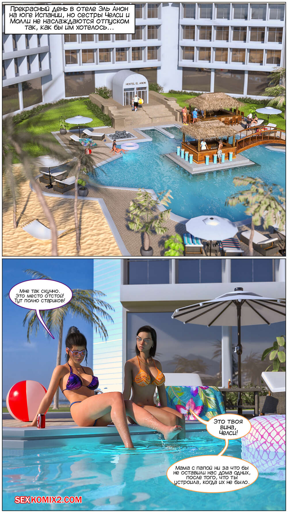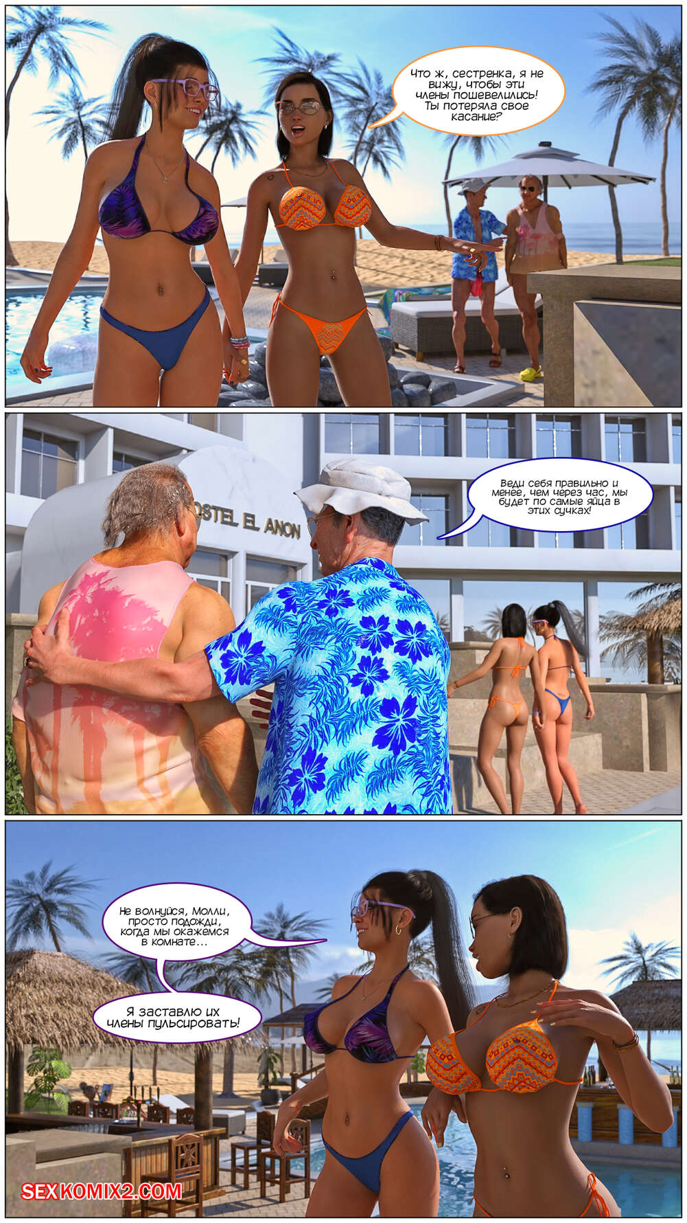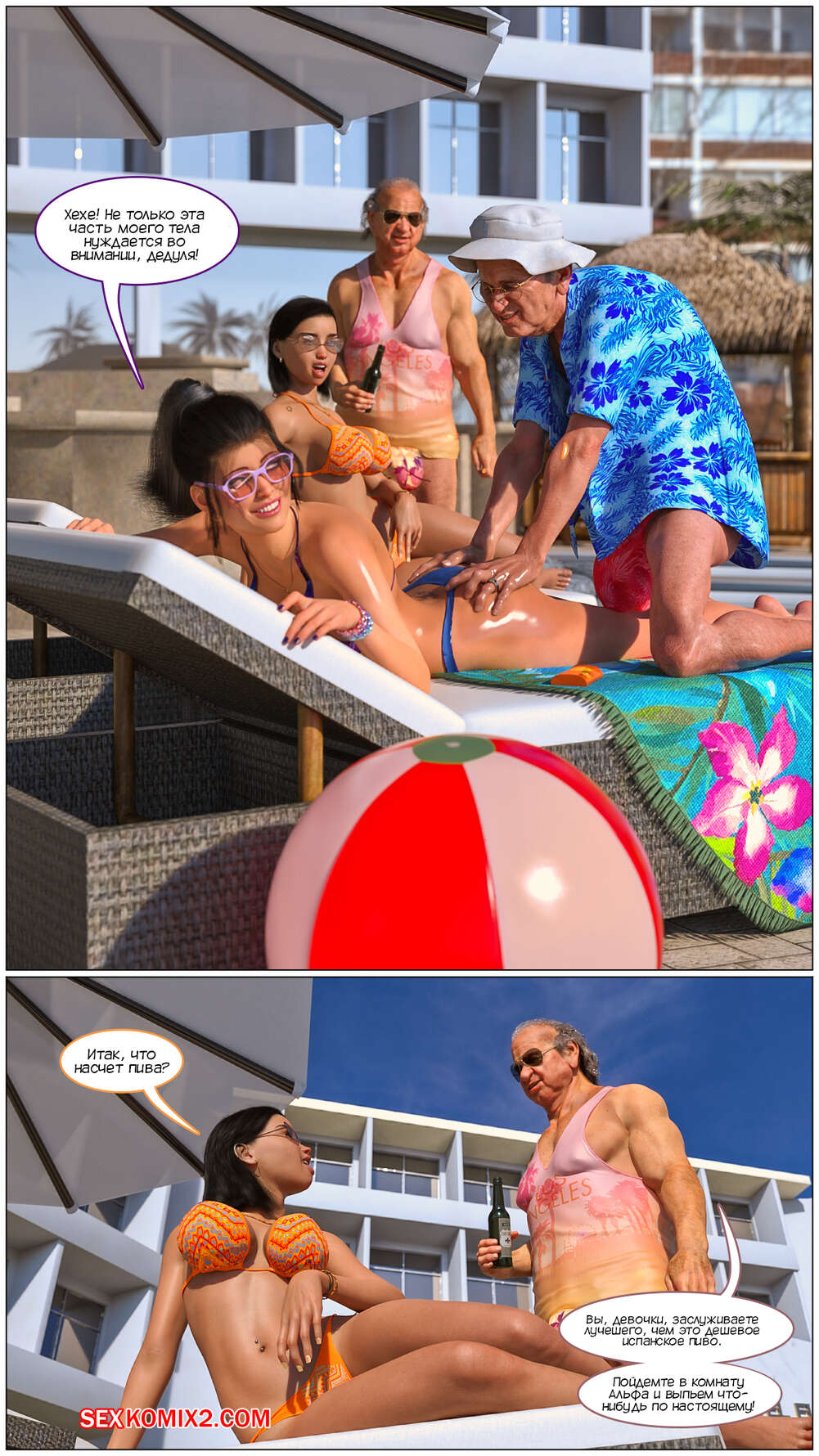 Порно комикс Грязный старик. Блуд на каникулах. Dirty Gramps. Vacation Fornication. TAB109. Во время отдыха у бассейна две горячие красотки решили соблазнить стариков. Они отправились в комнату к мужчинам, где девушки раздели и дали старикать выебать их во все дырочки большими хуями.
