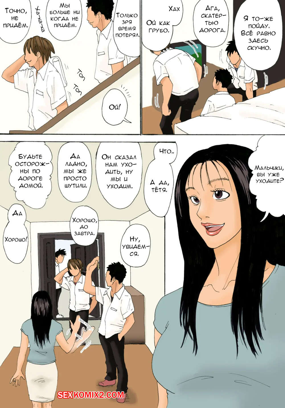 Порно комикс Друзья её сына застукали их, мама не останавливается. Kiyokawa Nijiko Горячая брюнетка милфа разделась перед сыном и стала с ним трахаться. Их спалил друг парня, но милфу это не смутило и она дала другу сына выебать свою пизденку.