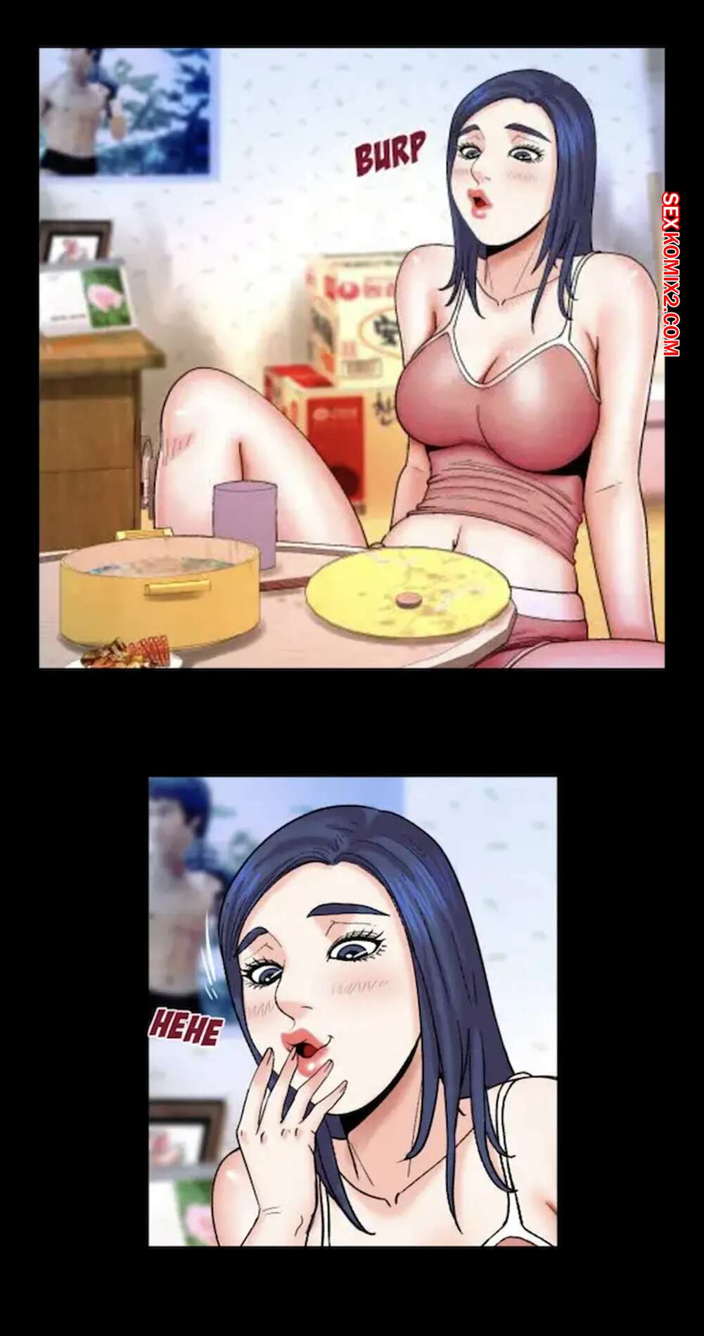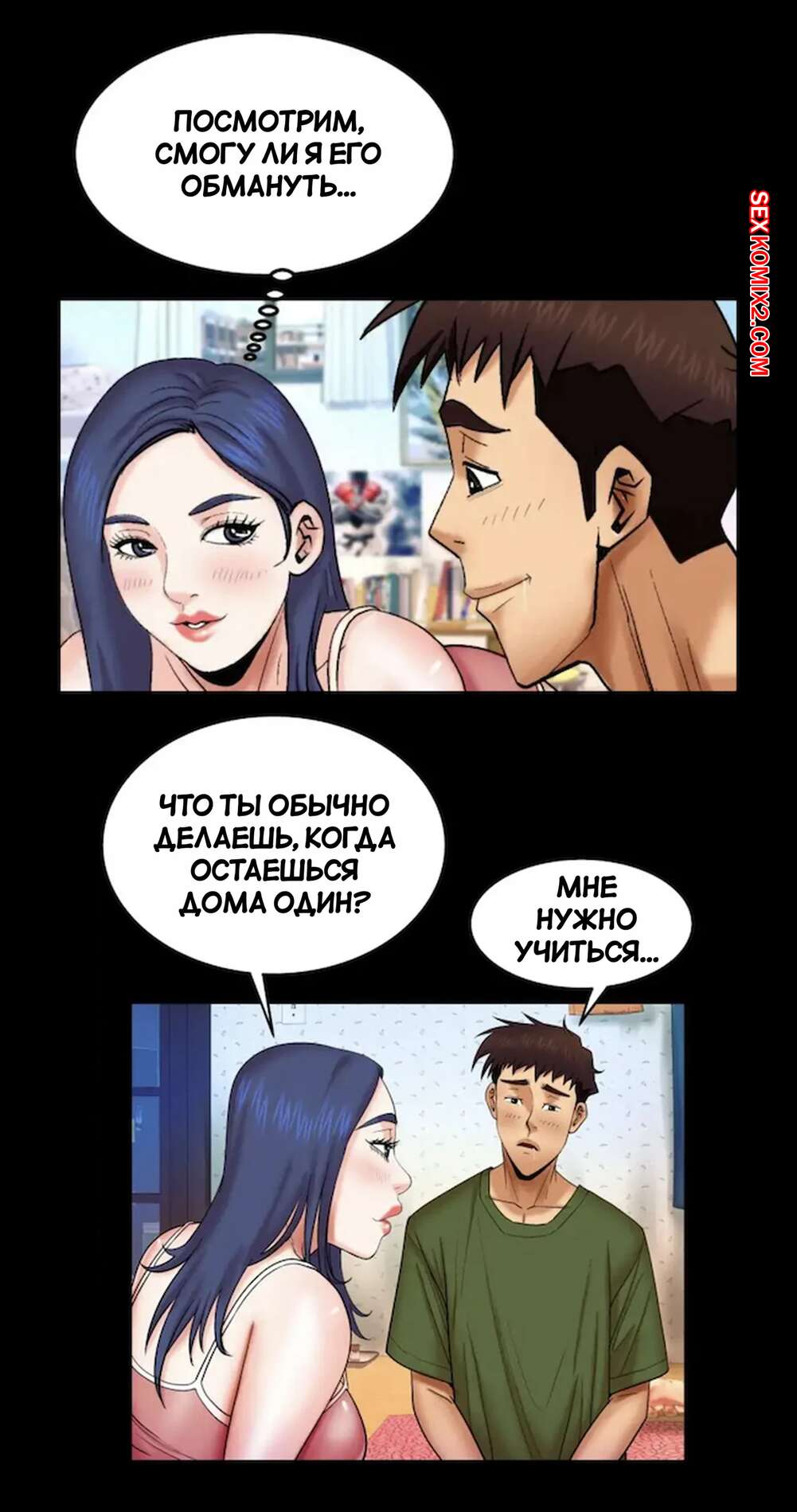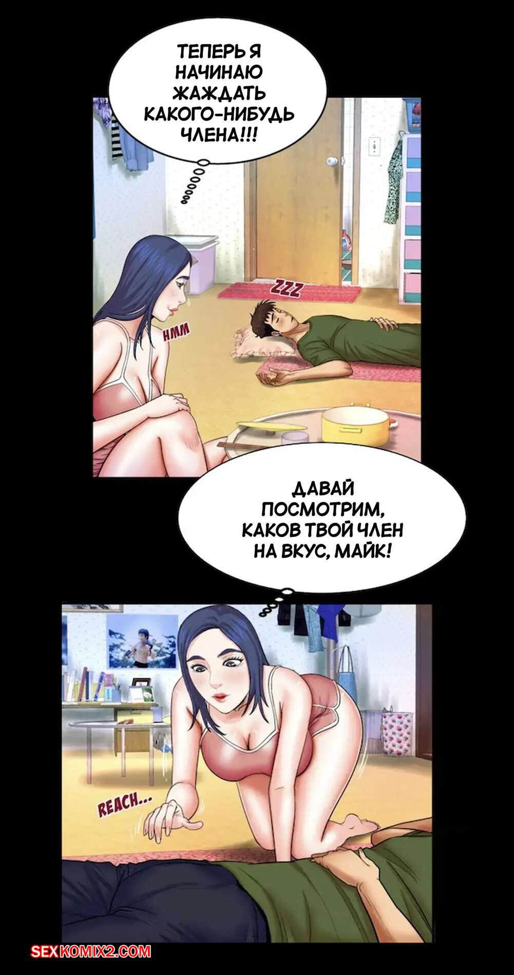 Порно комикс Моя тетя. Без цензуры. Часть 20. My Aunt. Toomics Горячая брюнетка была очень возбуждена и решила повеселиться со своим дружком. Девушка разделась и отсосала большой хуй парня, от чего он довольно быстро кончил.