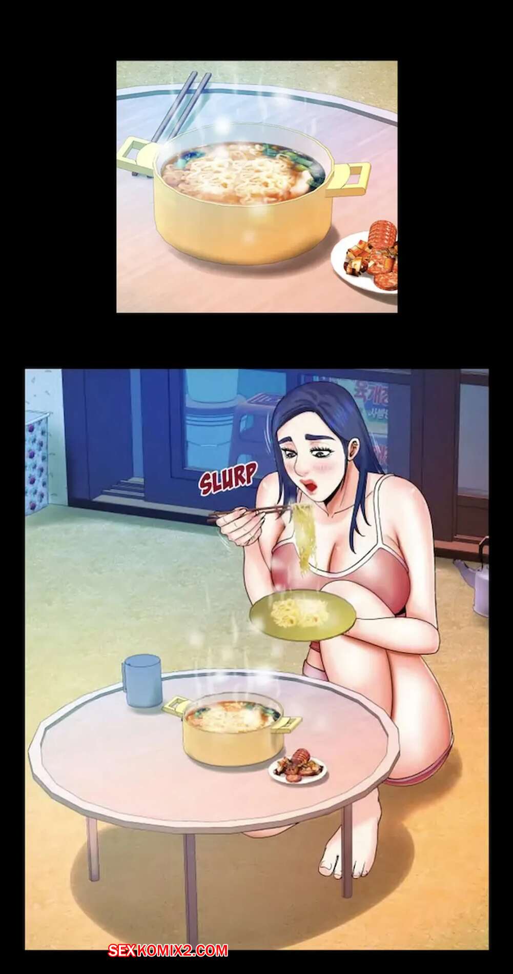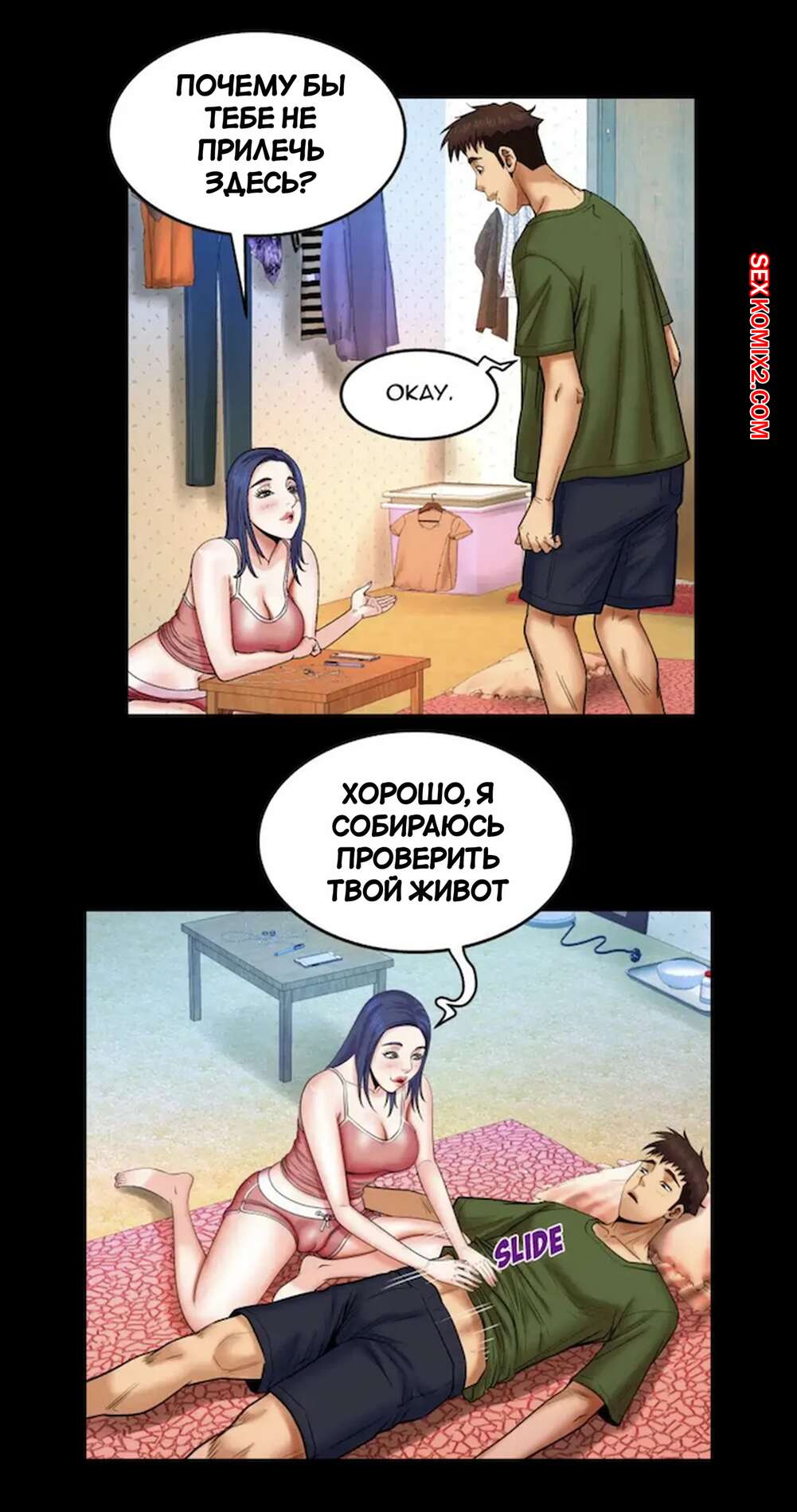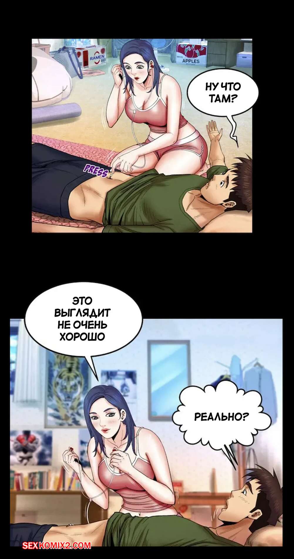 Порно комикс Моя тетя. Без цензуры. Часть 20. My Aunt. Toomics Горячая брюнетка была очень возбуждена и решила повеселиться со своим дружком. Девушка разделась и отсосала большой хуй парня, от чего он довольно быстро кончил.