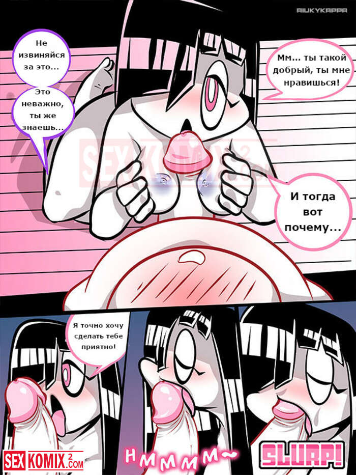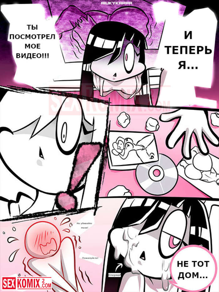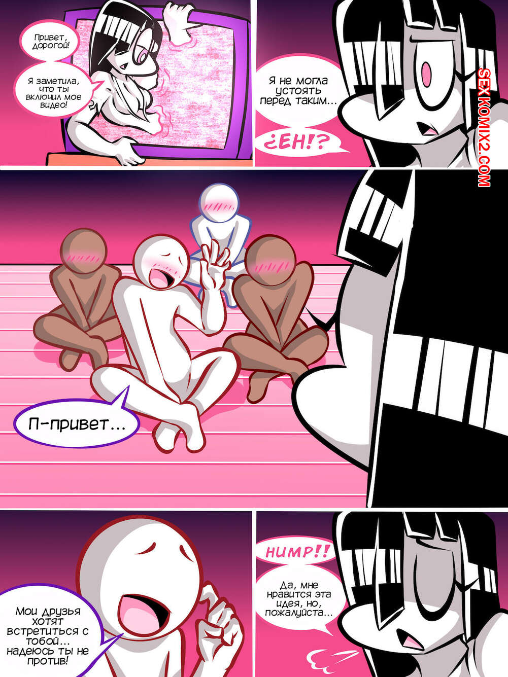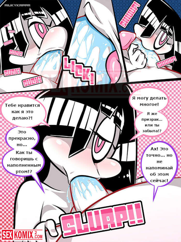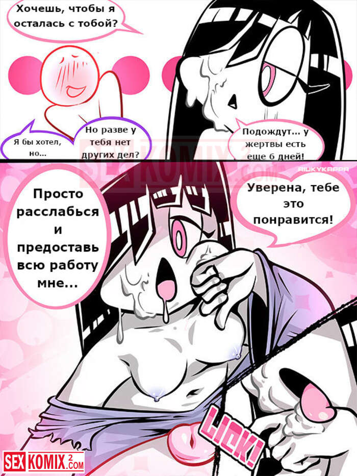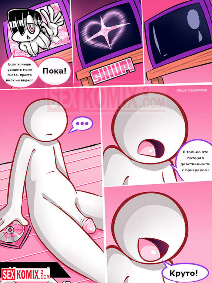 Порно комикс Паранормальное удовольствие. Звонок. Riukykappa. Девушка призрак ошиблась телевизором и пришла к парню, который мастурбировал. Парень попросил остаться девушку, чтобы она помогла ему кончить. Брюнетка из телека села на член парня и трахнула его.