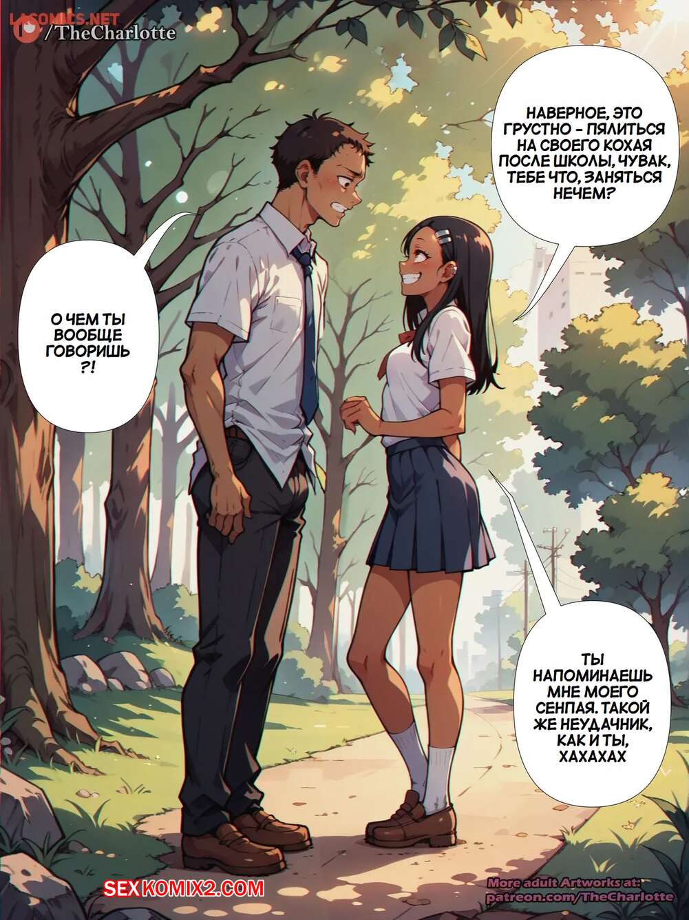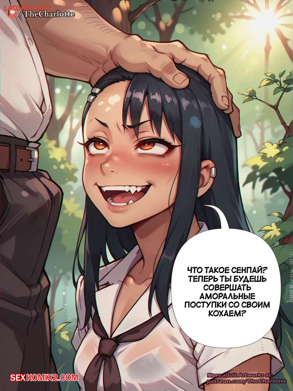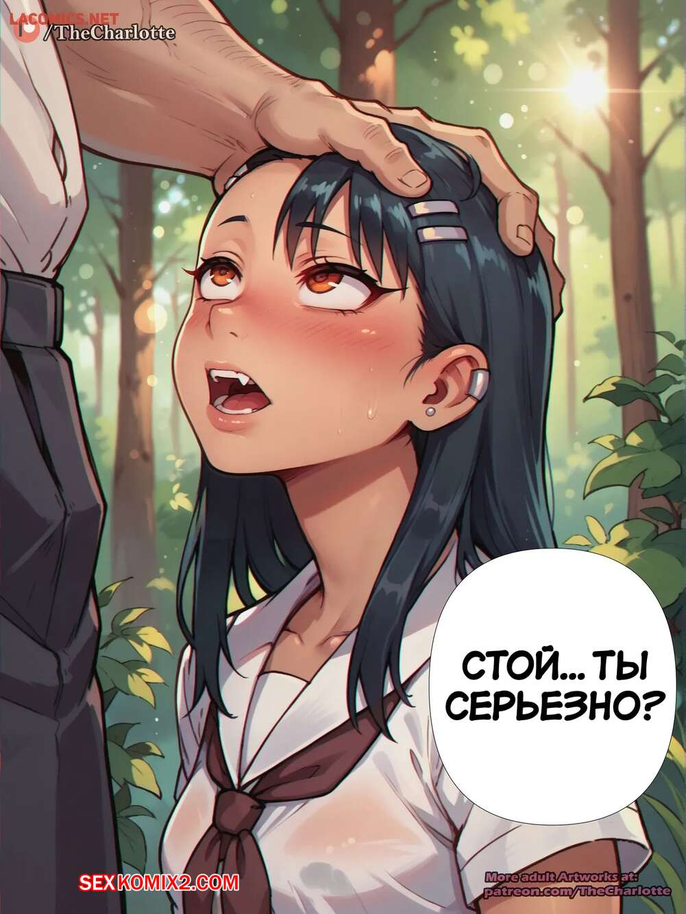Порно комикс Нагаторо Сан. Nagatoro san Парень с девушкой уединились в лесу и решили повеселиться. Красотка встала на колени и отсосала большой хуй парня, после чего дала ему выебать свою пизденку.