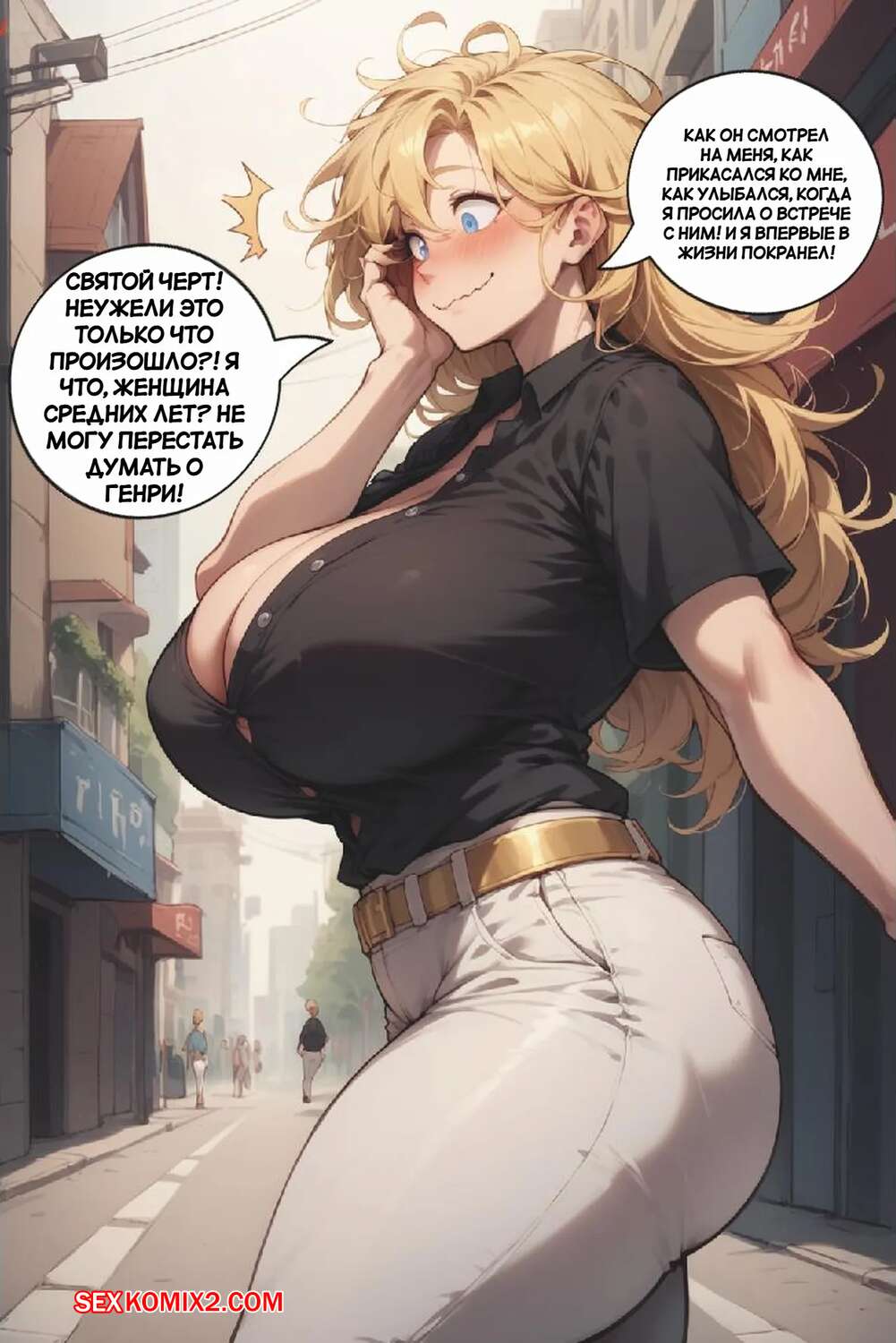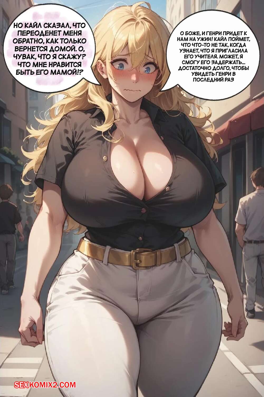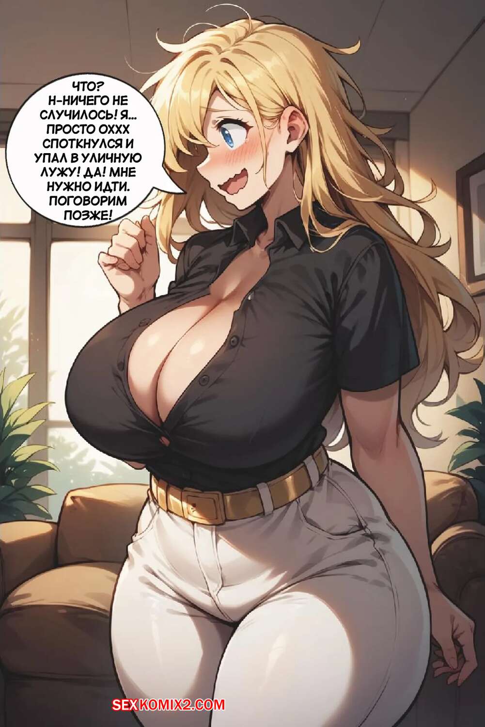 Порно комикс Лучшие планы. Best Laid Plans. AlwaysOlder. AI generated. Молодой парень превратился в горячую блондинку милфу, которая испытывает сильное возбуждение. Девушка стала ласкать свою пизденку, чтобы кончить. После этого сучка встретилась с симпатичным парнем и дала ему себя хорошенько выебать.