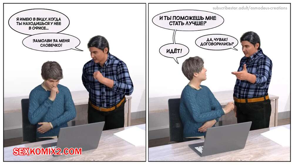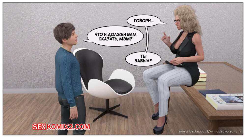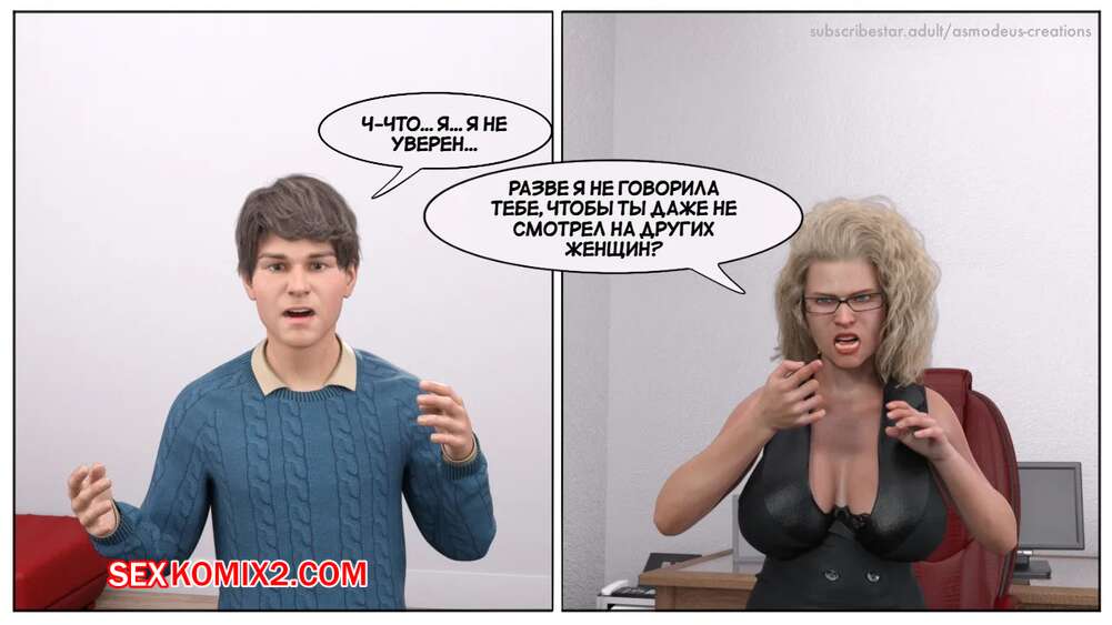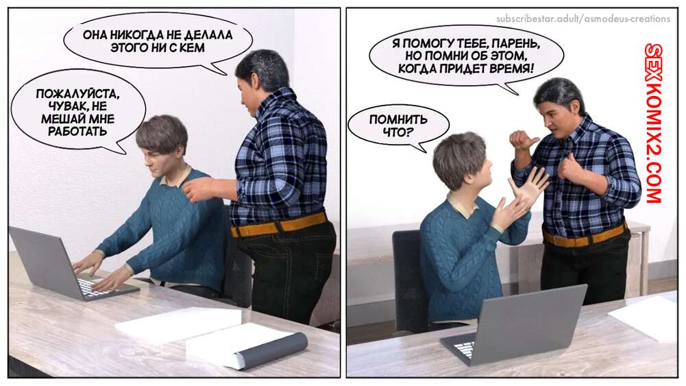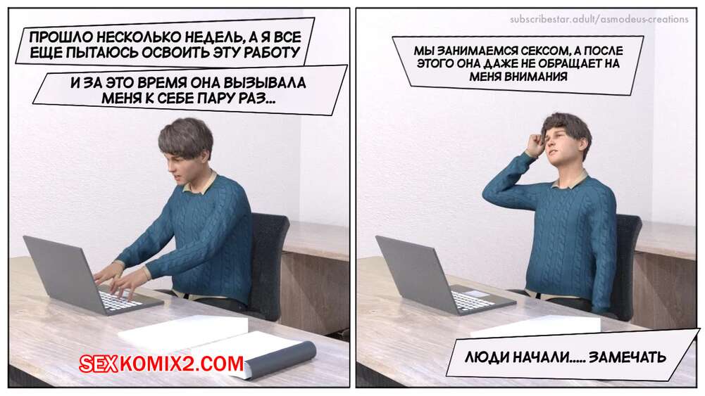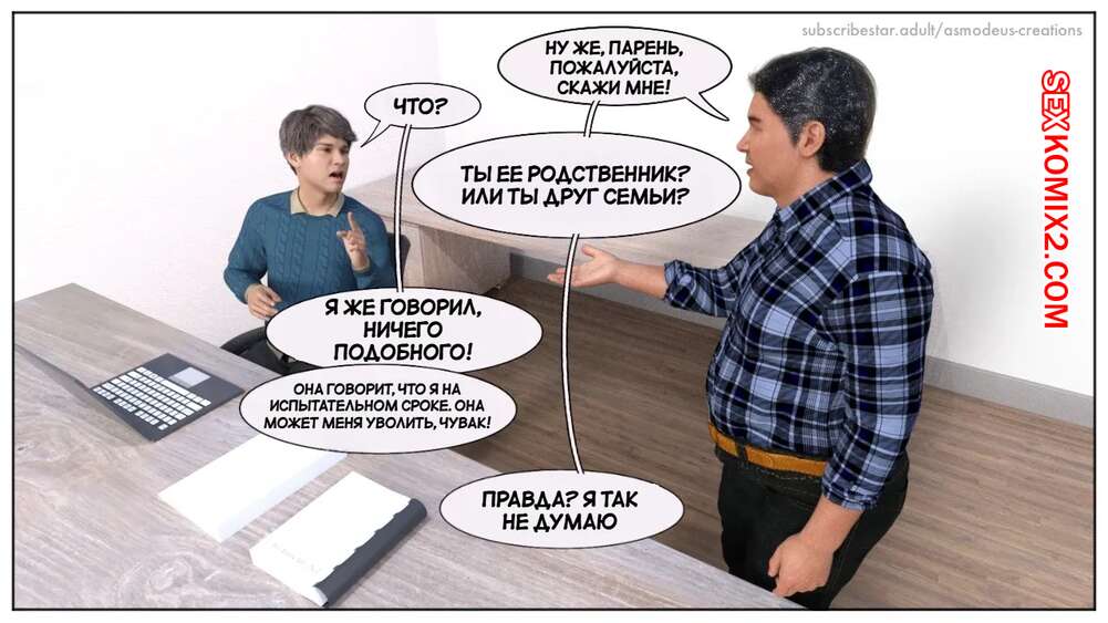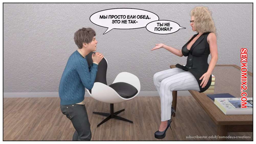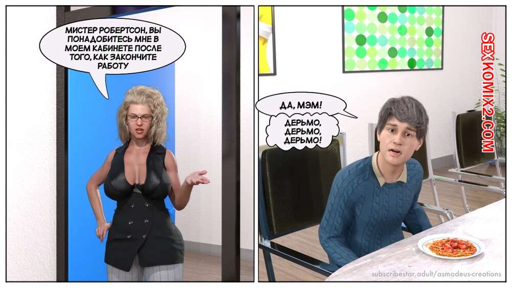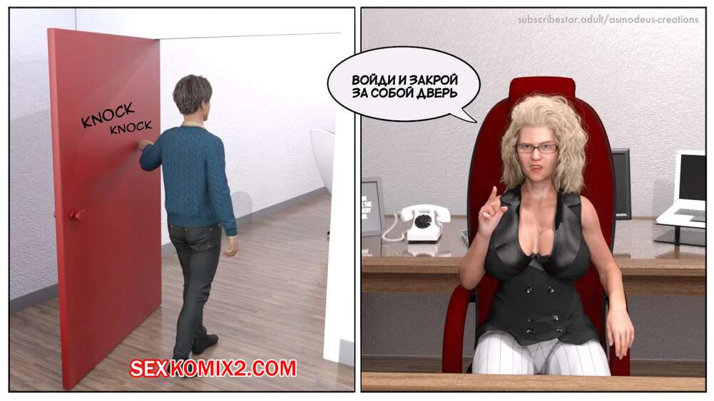 Порно комикс Моя новая работа. Часть 2. My New Job. Lucius Logan Сисястая блондинка милфа стала подозревать своего нового сотрудника в нарушении правил офиса и вызвала его к себе. Красотка собиралась уволить парня, но он стал умолять ее не делать этого.