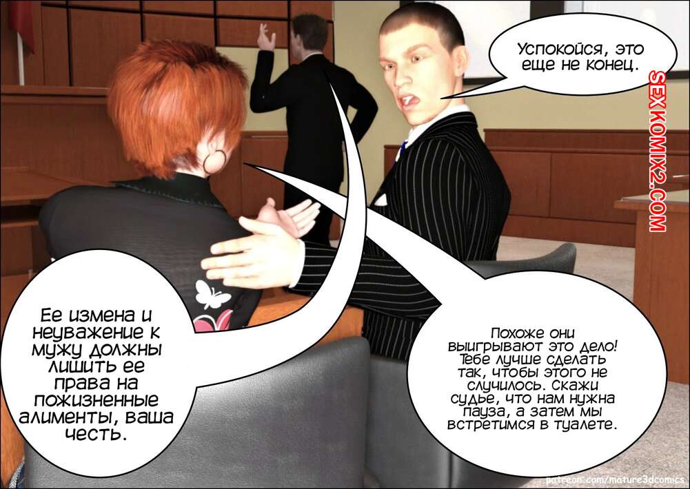 Порно комикс Поймали с поличным. Часть 4. Caught In The Act. Mature3DComics Брюнетка милфа узнала, что ее муж трахается с ее мамой, и требует развода. Все было не в ее пользу, но красотка уединилась в туалете со своим юристом и трахнулась с ним, чтобы он сделал все возможное ради победы.