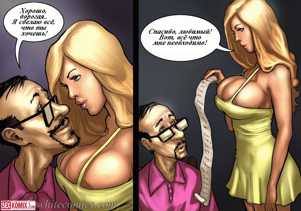 Эрокомикс «Игра в покер». Этот порно комиксы на русском языке о сексуальной блондинке с большими титьками, которая очень любит трахаться и азартные игры. Муж сексуальной девушки проиграл в карты серьёзным людям и они хотели поставить его на счетчик. Но тут вмешалась супруга проигравшего и пообещала отыграться, а мужа отправила погулять на улицу. Но и она постоянно проигрывала, и долг ей пришлось отплатить своим возбуждающим телом, она разделась до гола и предложила игрокам трахнуть её. Парни не обломались и начали засовывать свои большие члены красотке во все дыры. И это по круче денег, секс получался просто невероятный!