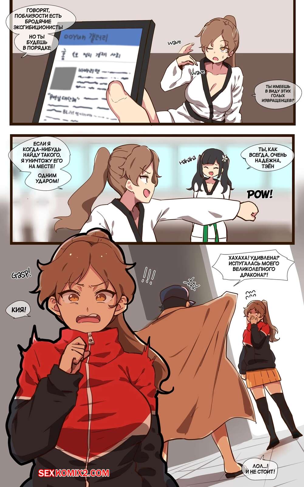 Порно комикс История тхэквондистки Тэён. Taekwon Girl Taeyeon Story Горячая брюнетка была очень возбуждена после тренировки и решили повеселиться с парнем, которая встретила в переулке. Девушка раздела парня и стала сосать его большой хуй, заставляя его кончить.