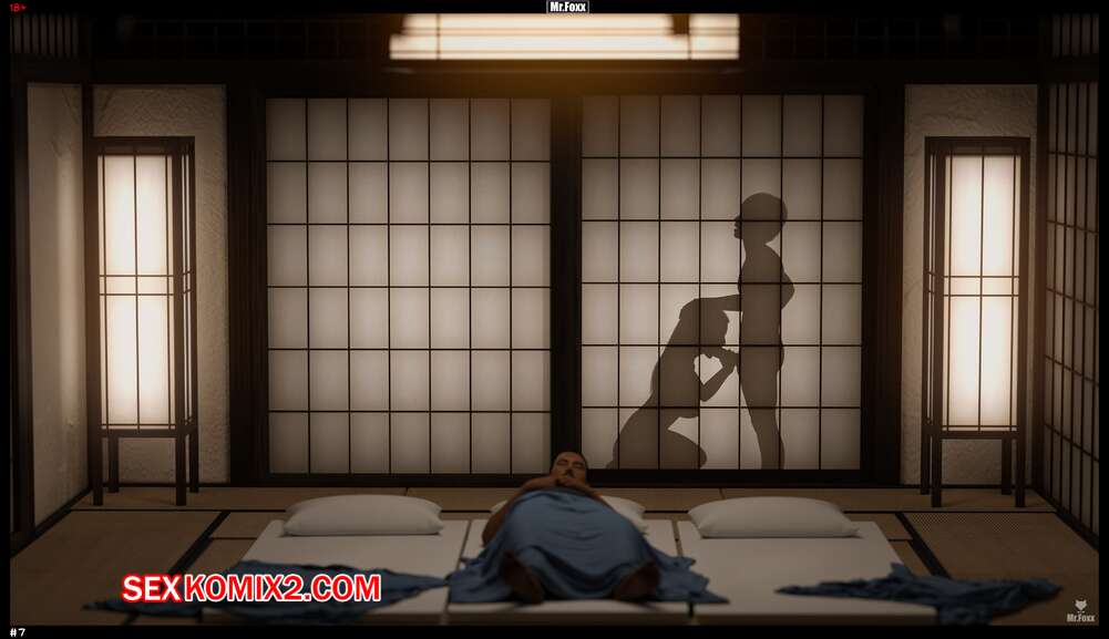 Порно комикс Наша рутина. Our Routine. Mr.Foxx Пока муж милфы спал ночью, она уединилась за ширмой со своим сыном. Мамочка встала на колени и отсосала большой хуй парня, после чего дала ему выебать свою пизденку и кончить на нее.