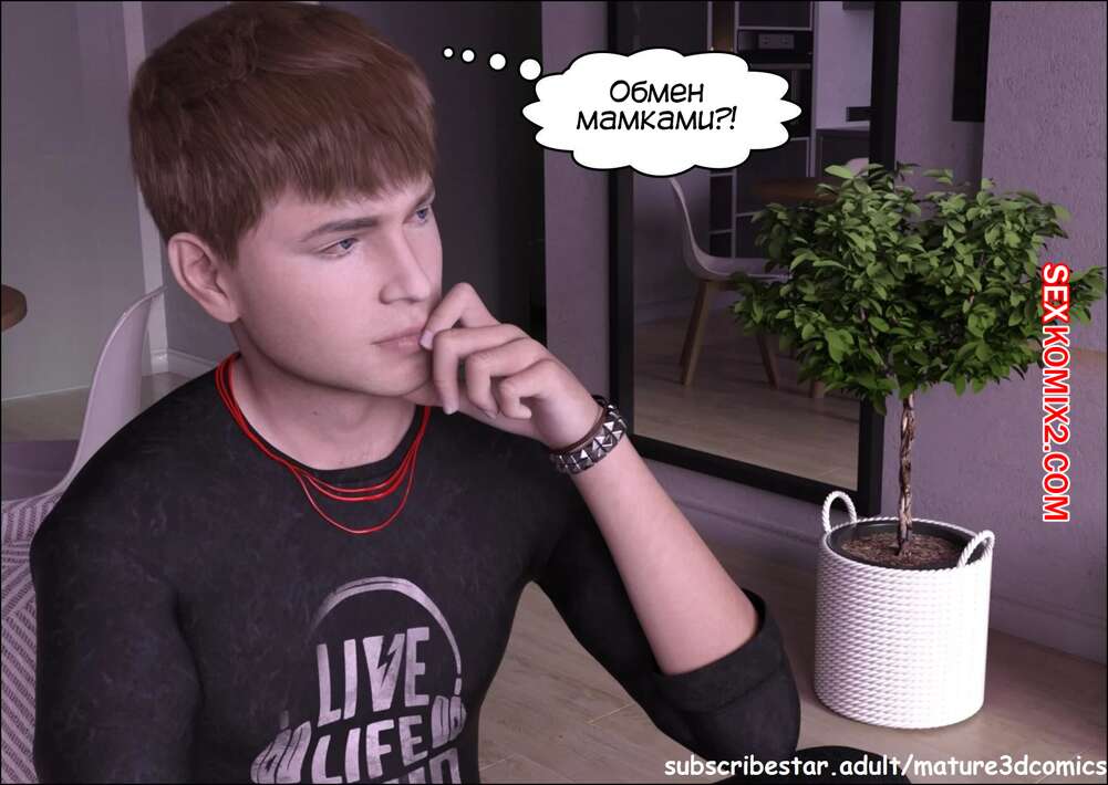 Порно комикс Милфа по соседству. Часть 7. The MILF Next Door. Mature3DComics Эйс выебал свою мамку и кончил глубоко в ее пизденку, а это увидел Майлз. Он рассказал обо всем своей мамке, после чего к ним домой пришел Эйс и предложил устроить обмен мамками.