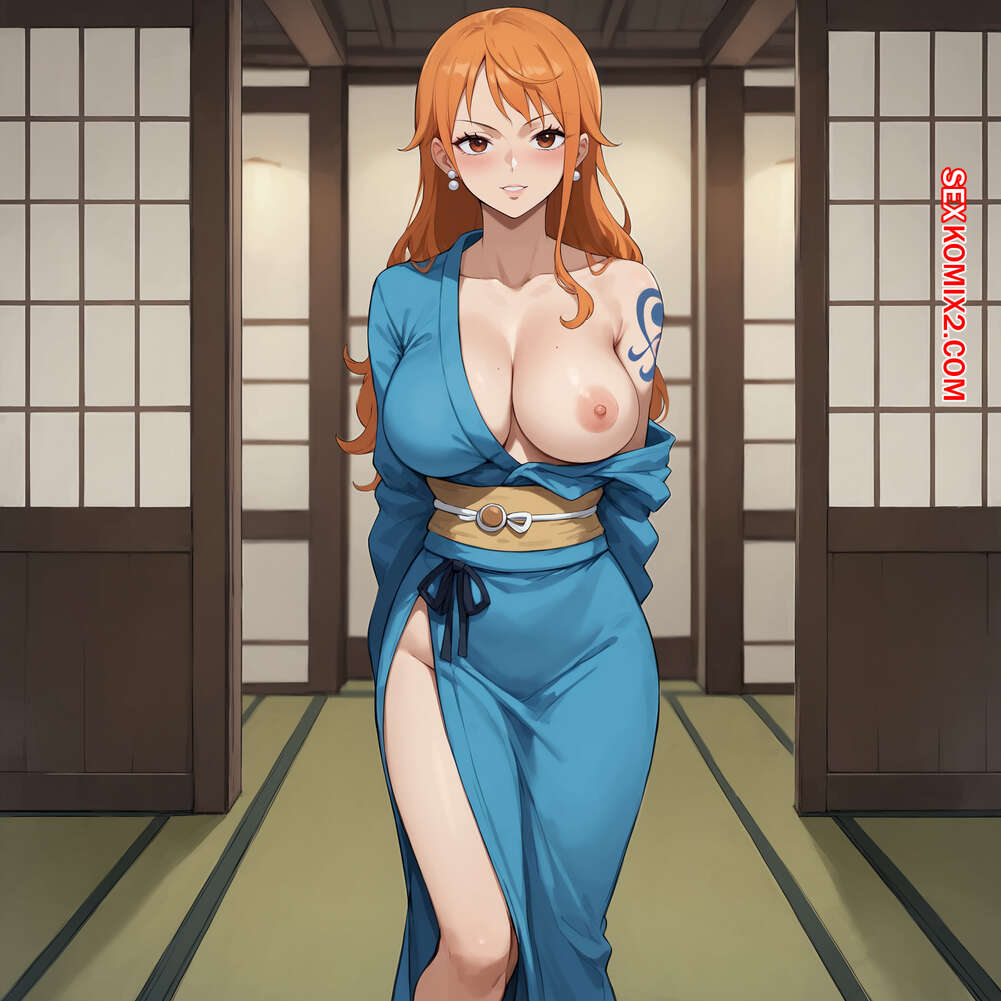 Порно комикс Nami. Kimono Fun. TemptArt Рыжая красотка была очень возбуждена и решила повеселиться со своим дружком. Девушка разделась и отсосала большой хуй своего дружка, после чего дала ему себя выебать.