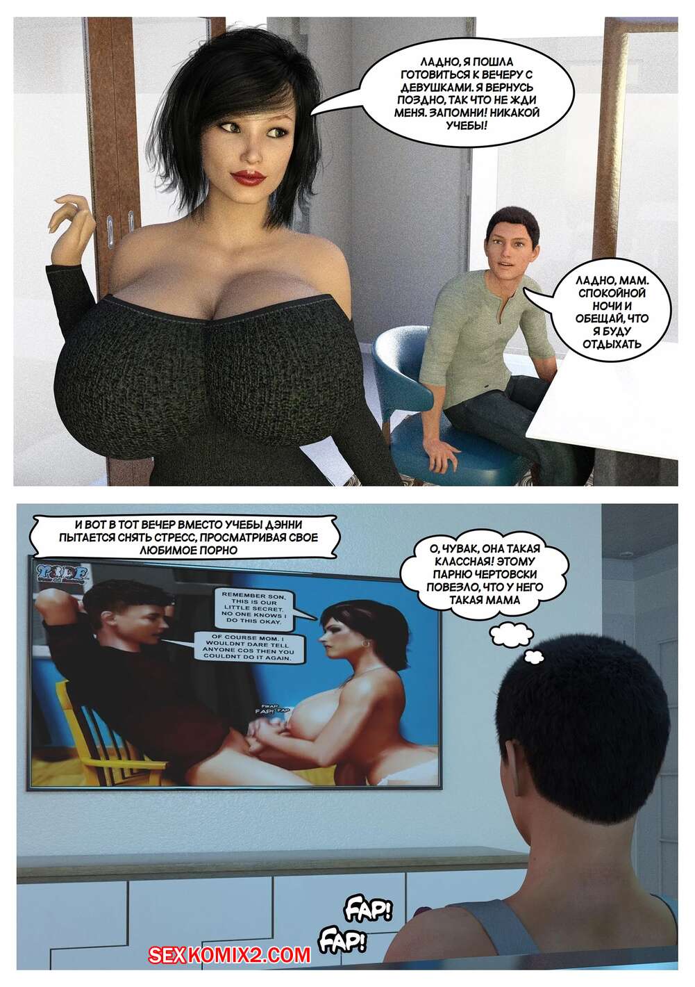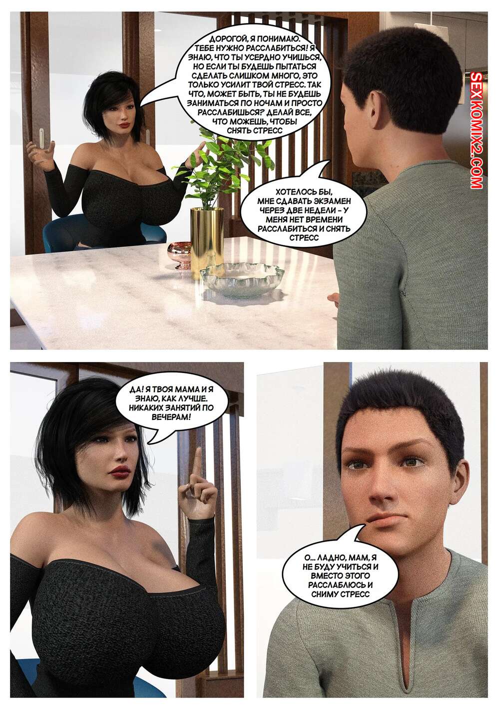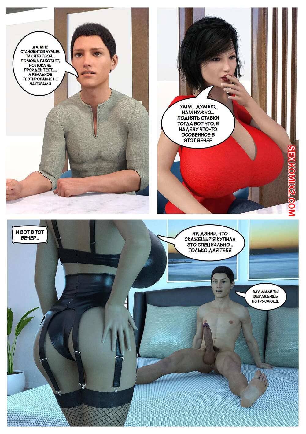 Порно комикс Расслабляющая терапия. Relax Therapy. The Omega Rabbit. Молодой парень постоянно испытывает сильное возбуждение, поэтому его мамка решила помочь парню расслабиться. Красотка разделась и отсосала большой хуй парня, после чего дала ему себя выебать.