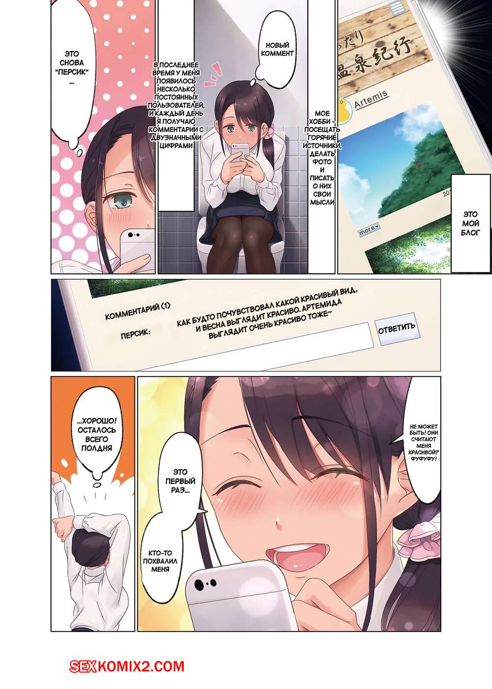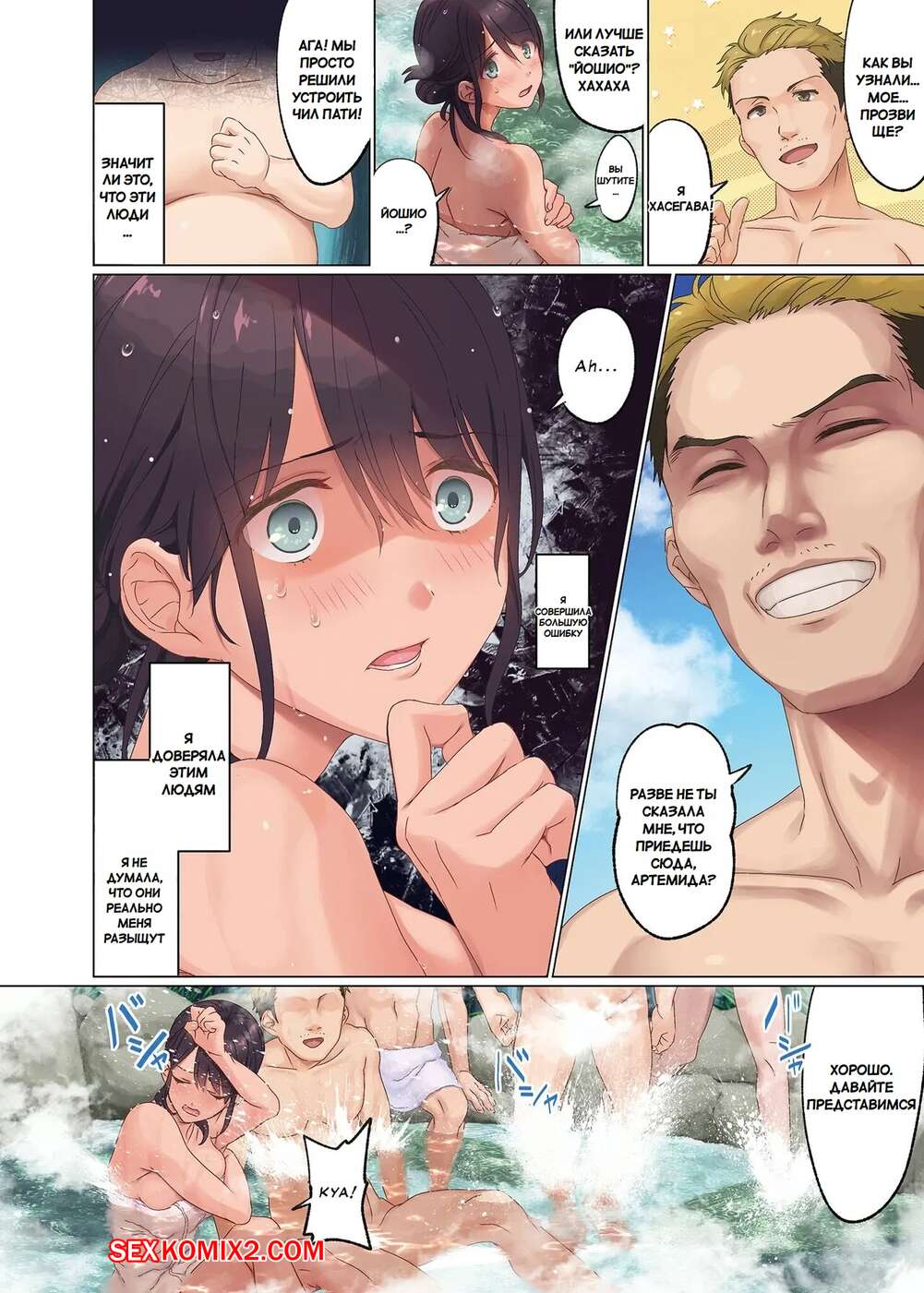 Порно комикс Пристрастился к селфи в социальных сетях. Трахаю офисную даму блогера Парни встретили сексуальную брюнетку на горячем источнике и решили с ней повеселиться. Они раздели девушку и дали ей отсосать свои большие хуи, после чего хорошенько ее выебали.