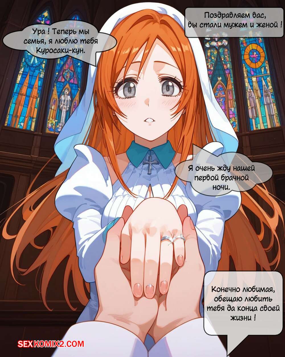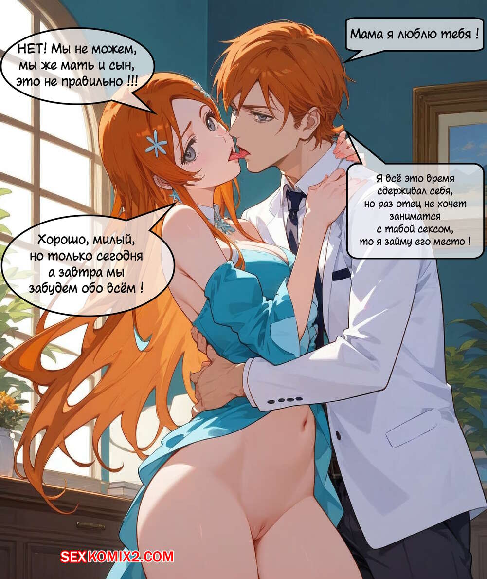 Порно комикс Bleach. Орихиме и Казуи. Плод запретной любви. Mave Vame Рыжая красотка Орихиме была очень возбуждена и решила трахнуться со своим сыном. Девушка разделась и отсосала большой хуй парня, после чего дала ему себя выебать.