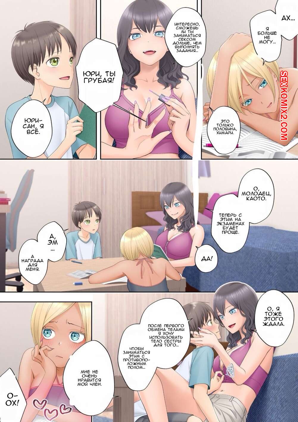 Порно комикс Я поменялся телами со своей любимой старшей сестрой. siina yuuki Брат с сестрой поменялись телами и решили воспользоваться моментом. Девушка разделась и отсосала член парня, после чего раздвинула ножки и дала ему себя выебать.