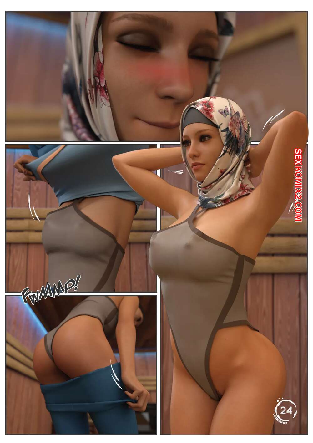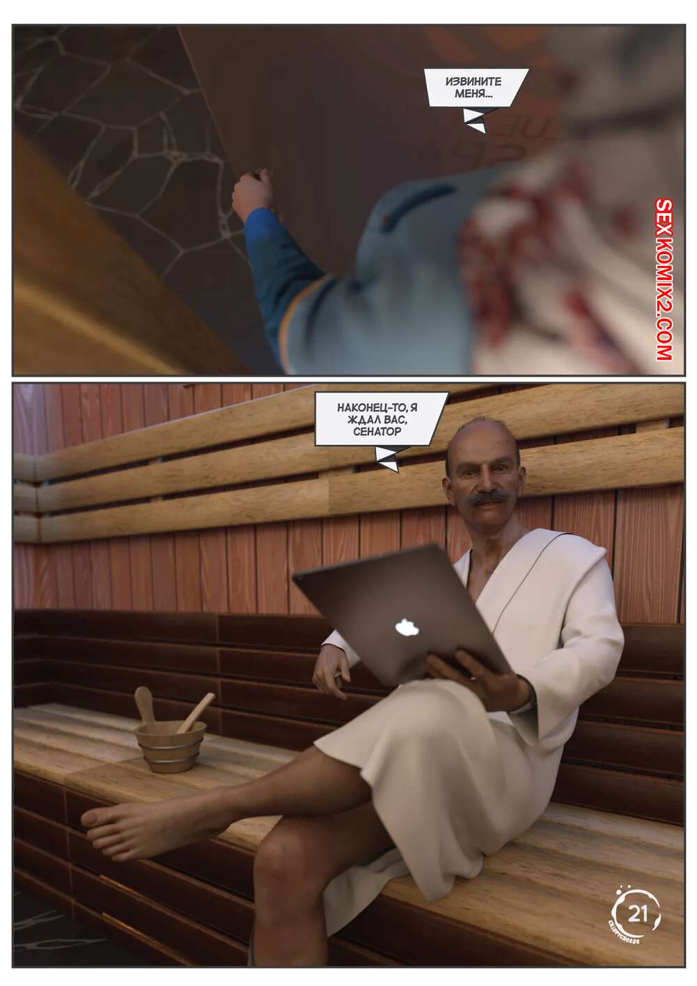 Порно комикс Непристойный контракт. Часть 5. Indecent Contract. Crispy Cheese Горячая сисястая брюнетка уединилась в бане со стариком. Девушка разделась и стала сосать его большой хуй, после чего оседлала член старика и дала ему себя выебать.