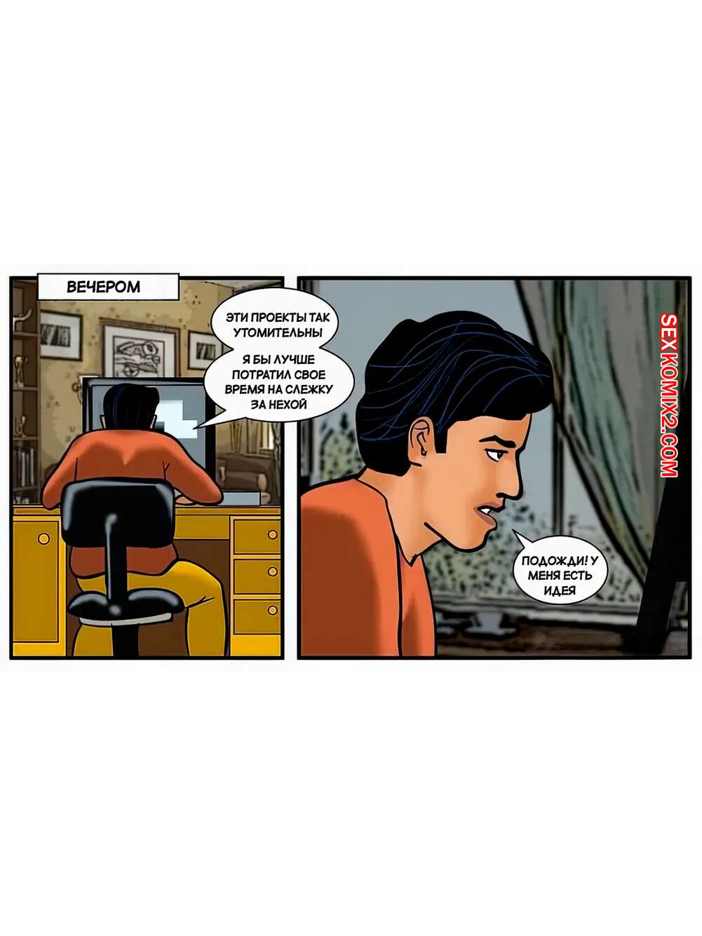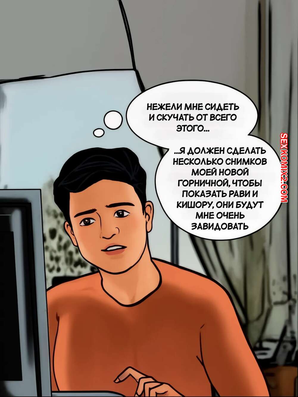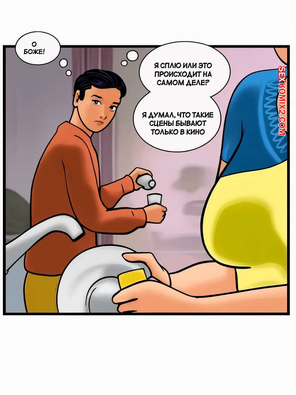 Порно комикс Веламма. Часть 18. Velamma. Velamma Горячая милфа Веламма была очень возбуждена и решила повеселиться со своим мужем. Красотка разделась и отсосала хуй мужа, после чего дала ему себя выебать. Их за этим делом спалил молодой парень, который пошел в свою комнату и стал дрочить.