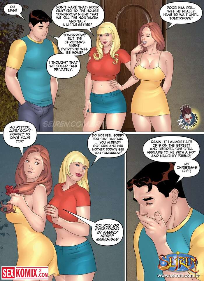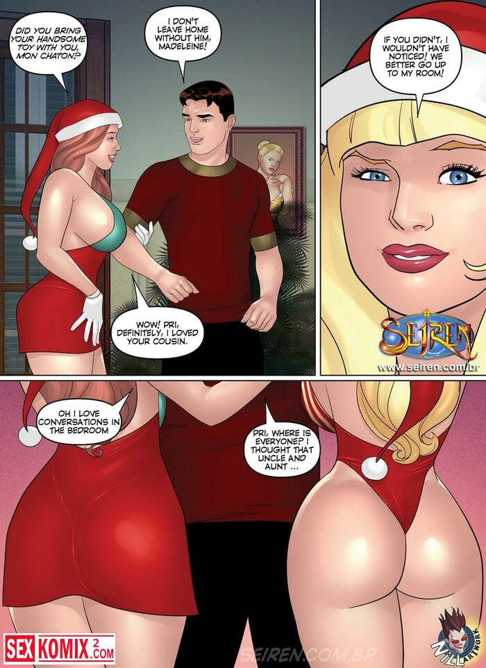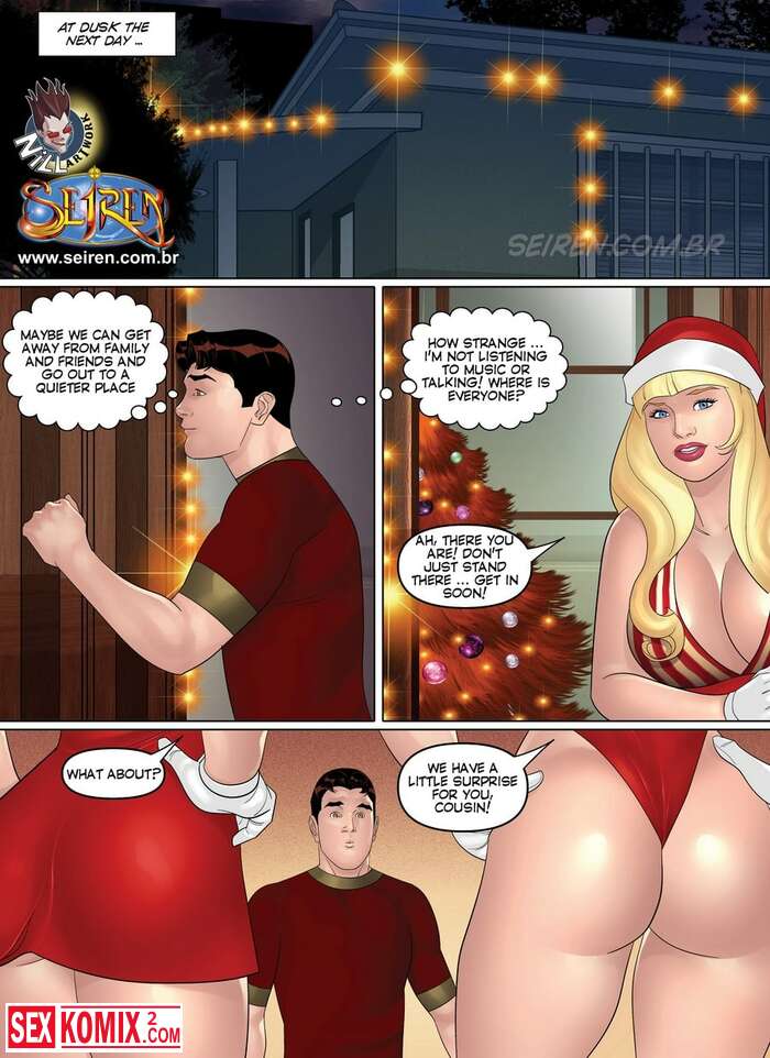 Порно комикс Горячая кузина. Часть 26. Английский. Рождество это время когда происходят чудеса, парень вернулся домой, а его встретили две сексуальные девушки в нижнем белье, они хотели секса втроем. Лучше подарка придумать невозможно.