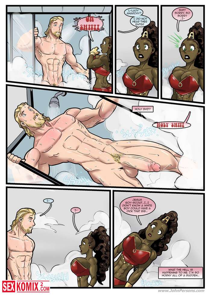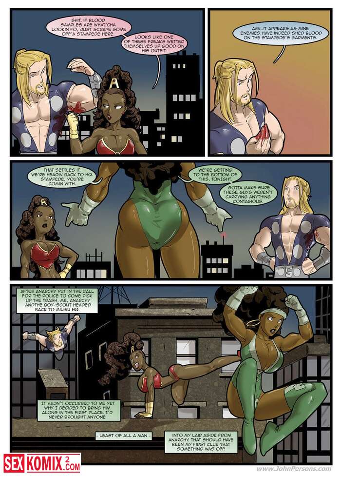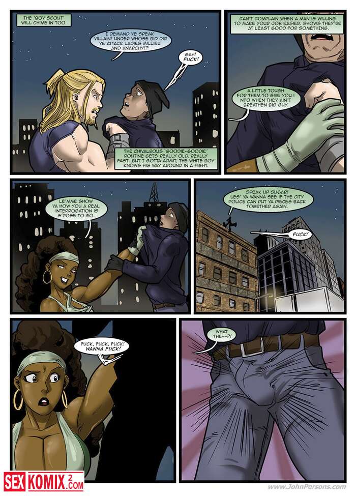 Порно комикс Сэм-Удавка. JohnPersons. Английский. Две чернокожие девушки супергерои после поимки преступника отправились в белому парню, чтобы отдохнуть после проделанной работы.
