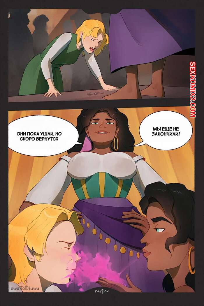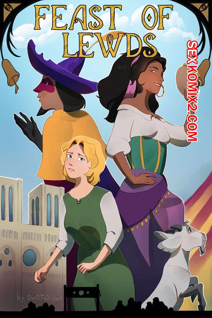 Порно комикс Праздник разврата. Feast of Lewds. OwOToDiUwU. Молодую горячую блондинку заковали в кандалы перед целой площадью и полностью раздели. После этого к девушке сзади подошла Эсмеральда и хорошенько выебала пизденку блондиночки своим большим членом.