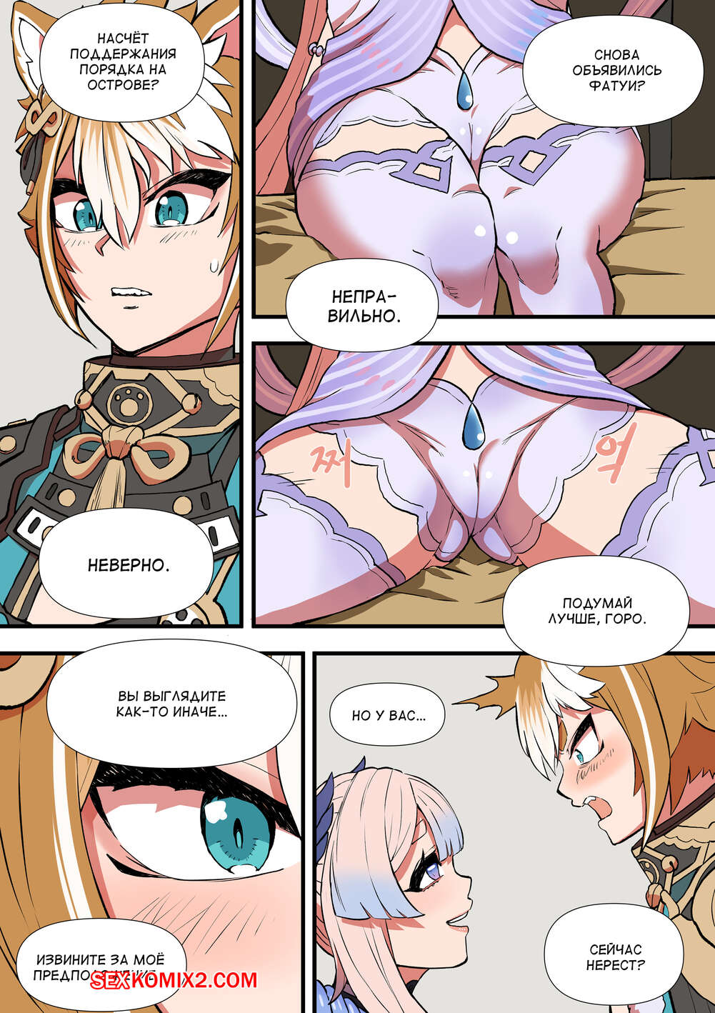 Порно комикс Genshin Impact. The Gratitude Of Watatsumi Maiden. Bluecandy Горячая блондинка была очень возбуждена и решила повеселиться со своим дружком. Девушка разделась и дала парню отлизать свою пизденку, после чего он выебал девушку и доставил ей огромное удовольствие.