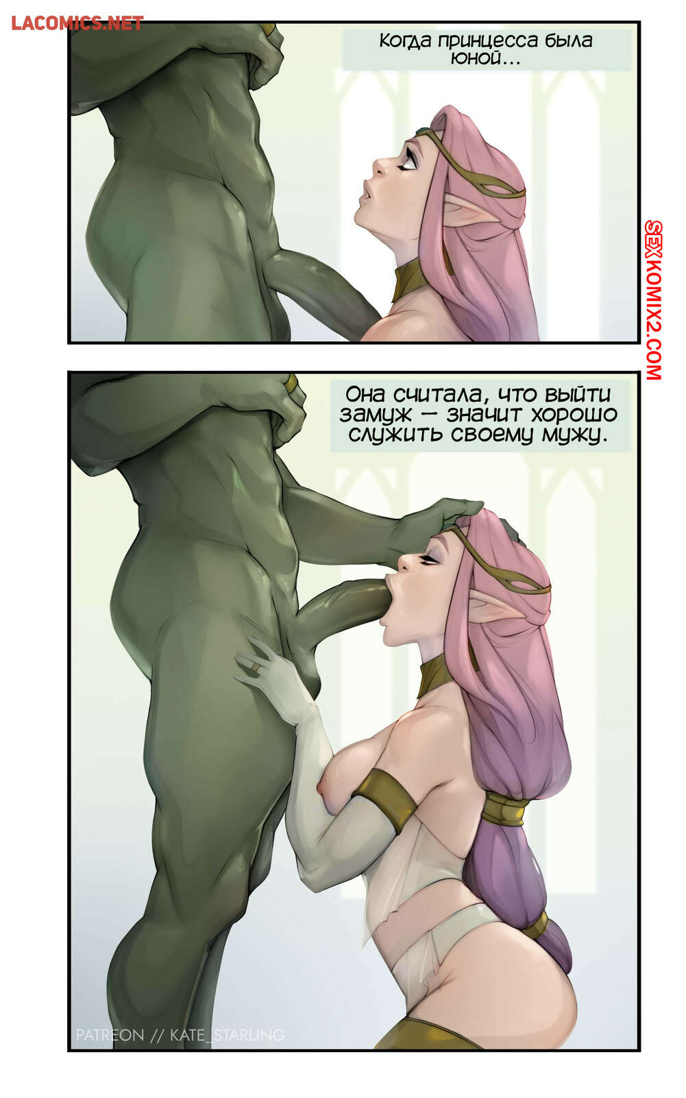 Порно комикс Кейт Старлинг. Эльфийская королева. Kate Starling. Elven Queen Горячая принцесса эльфийка выросла и стала королевой. Девушка любит радовать свой народ, поэтому она сосет большие хуи парней орков, после чего дает им себя выебать в задницу.