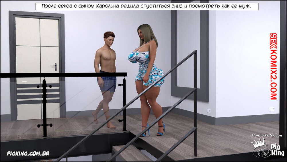 Порно комикс Каролина. Часть 9. Caroline. CrazyDad3D Горячая милфа Каролина продолжает наслаждаться большим членом своего сына. Пока ее муж Кларк спит на диване, красотка сосет хуй парня и дает ему выебать свою задницу.