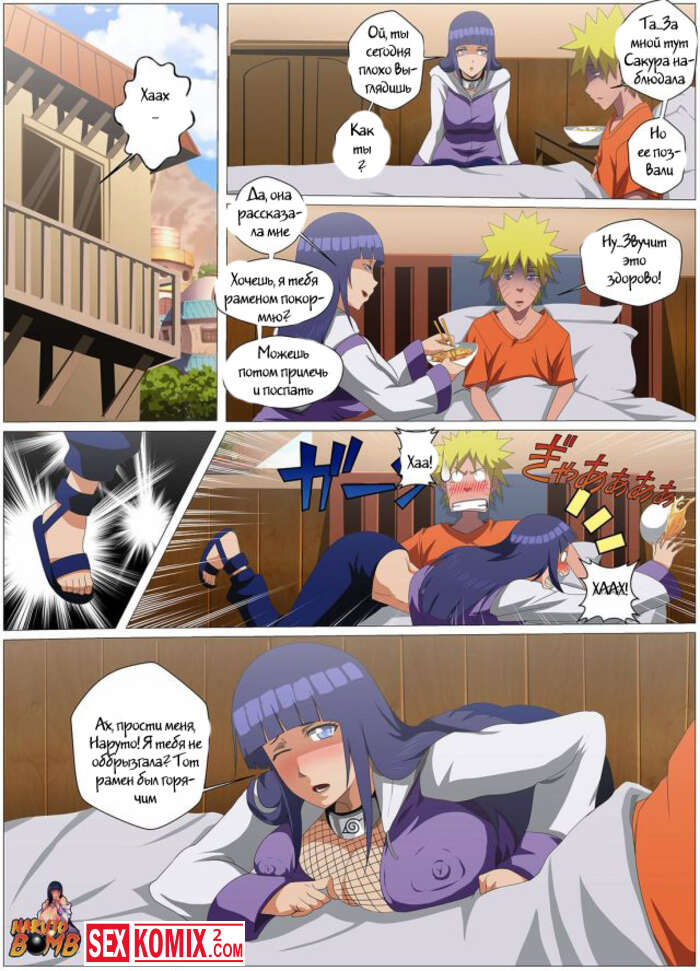 Порно комикс Наруто. Озорная медицина Хинаты. Парень заболел и лежит в пастели, красотка пришла ухаживать за ним. Она решила помочь ему с помощью секса.