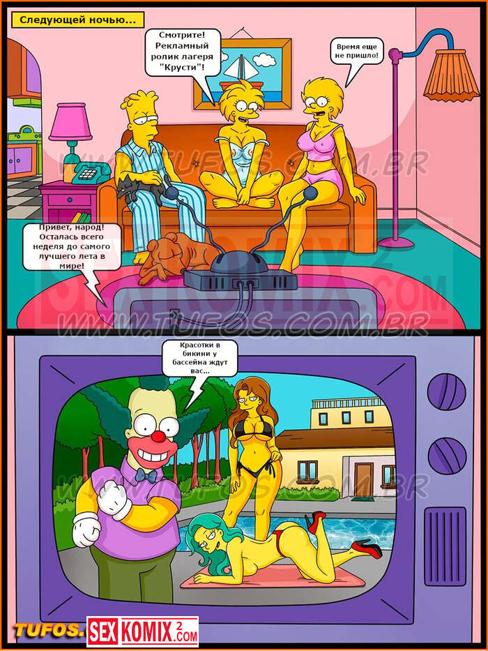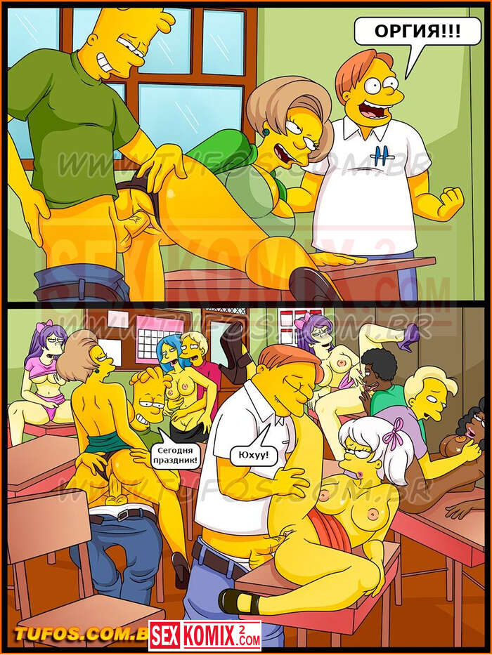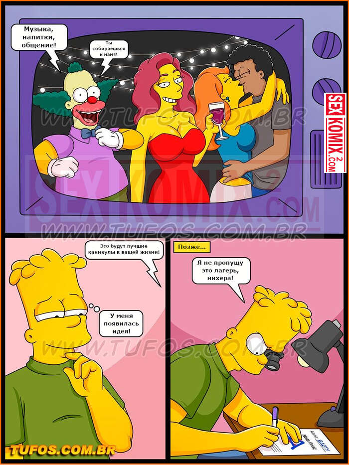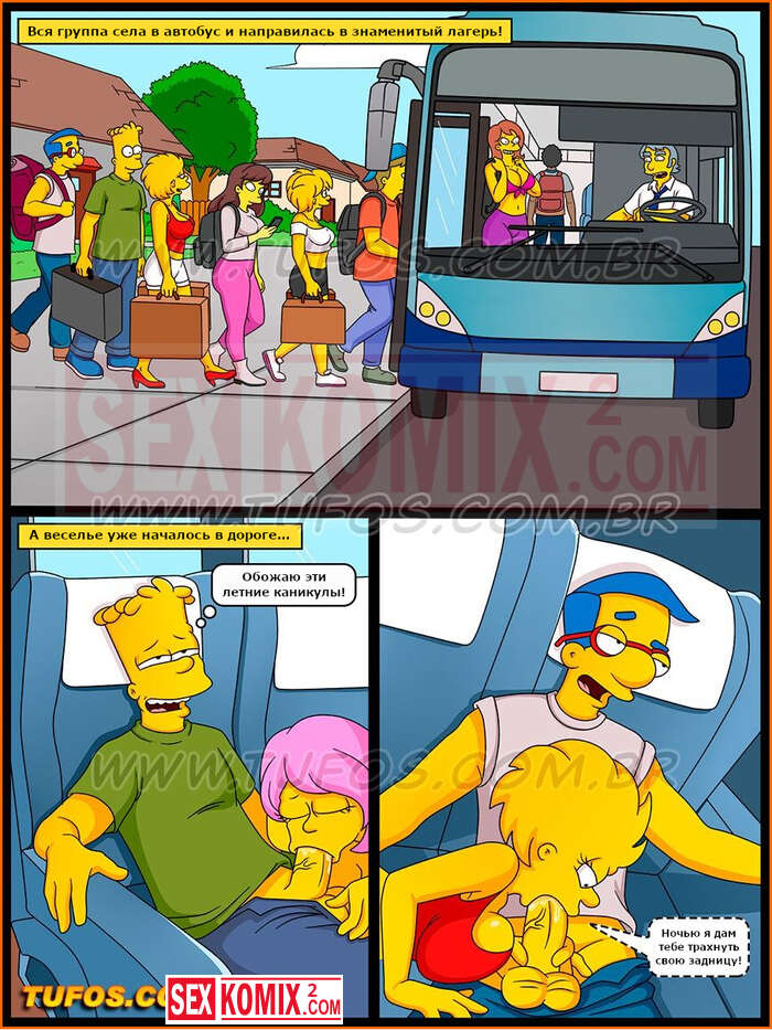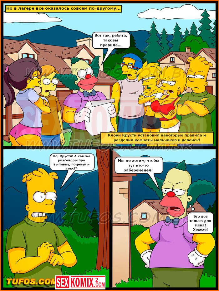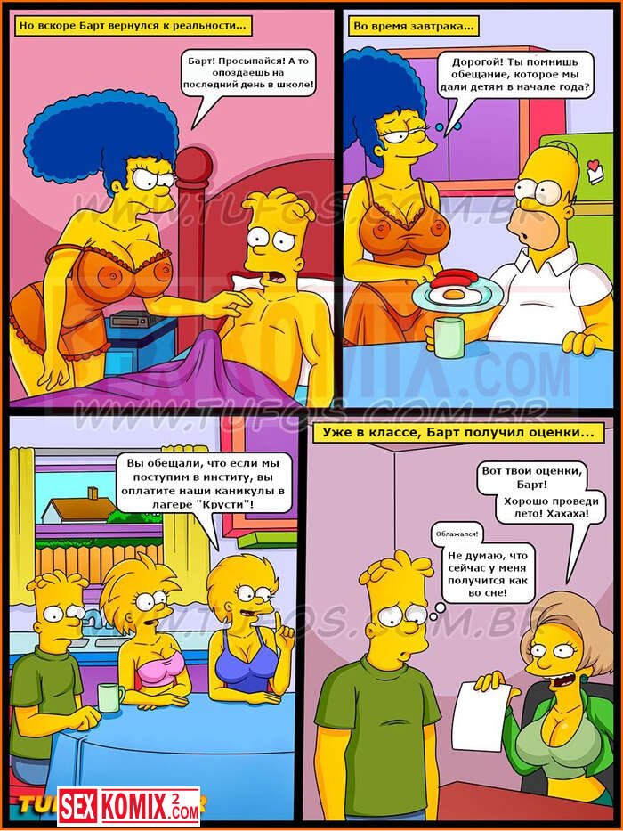 Порно комиксы Симпсоны. Часть 28. Каникулы в лагере Красти. Чтобы поехать в летний лагерь Барт должен получить хорошую оценку. Для этого он хорошо постарался со своей училки и она поставила ему высший бал.