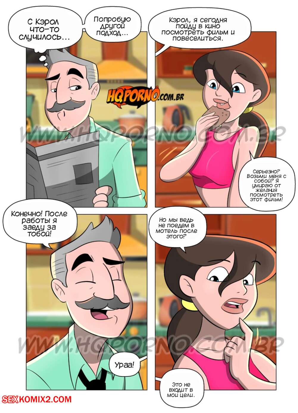 Порно комикс Извращенцы. Часть 16. Os pervertidos. Hqporno Господин Густаво отправился в кино вместе с Кэрол. Там он достал перед ней свой член и возбудил девушку. Она стала сосать хуй мужчины, после чего он выебал ее попку.