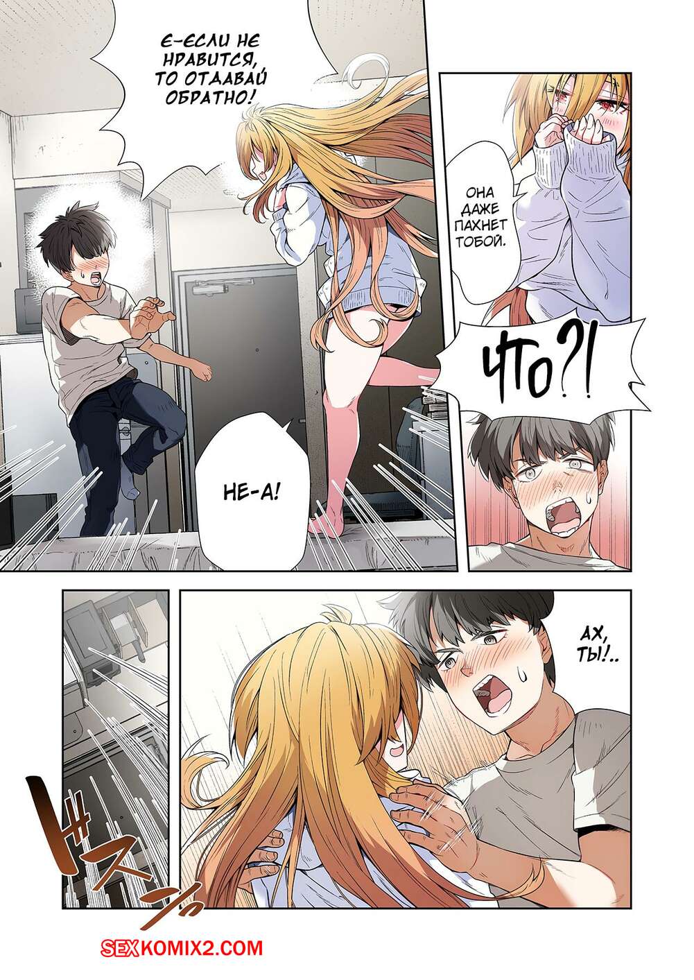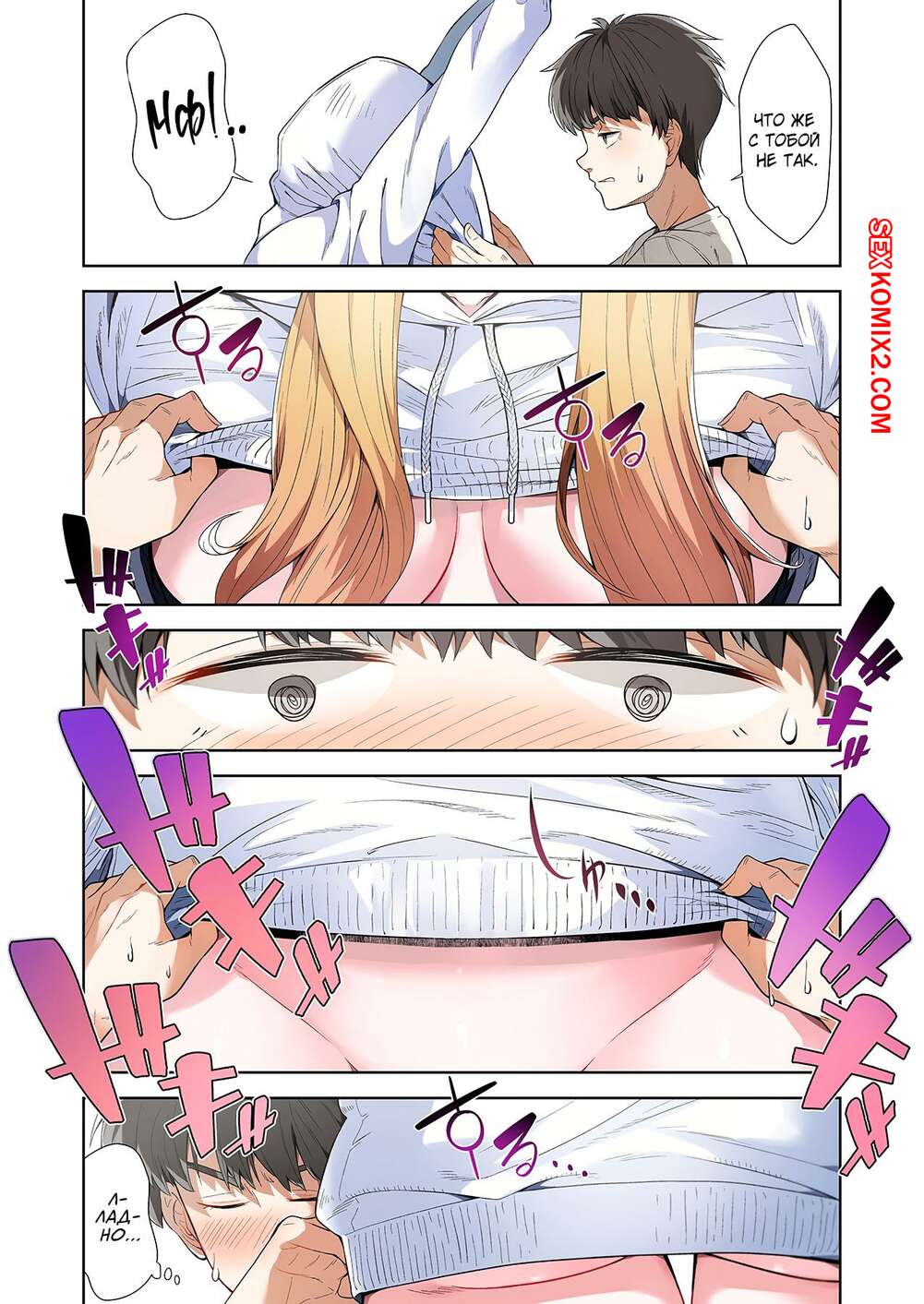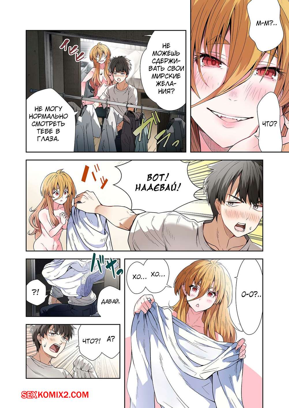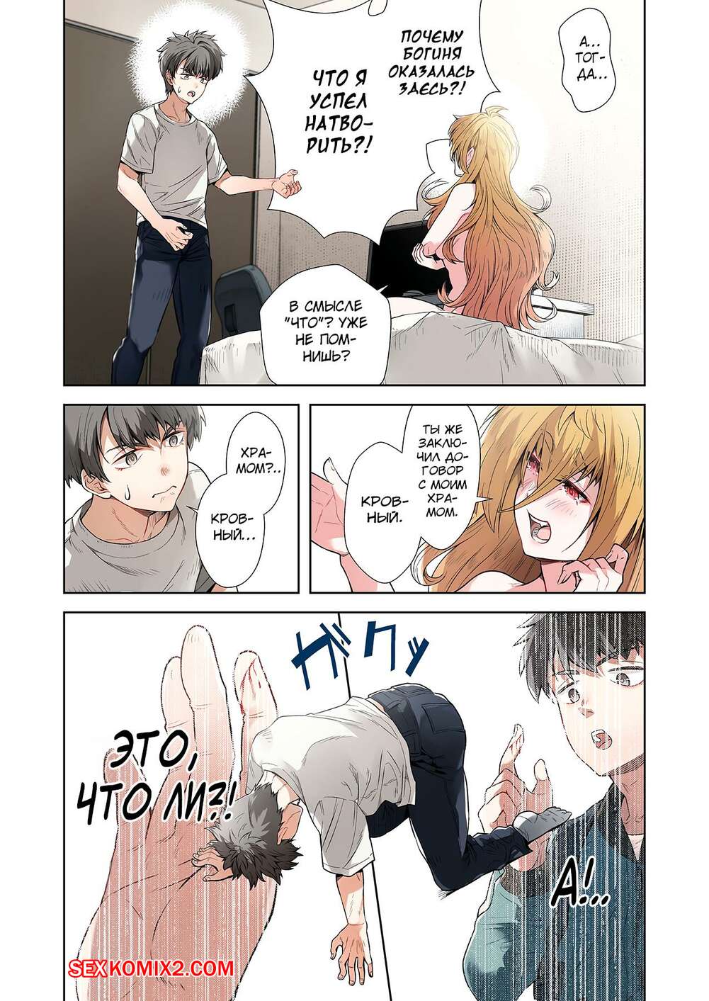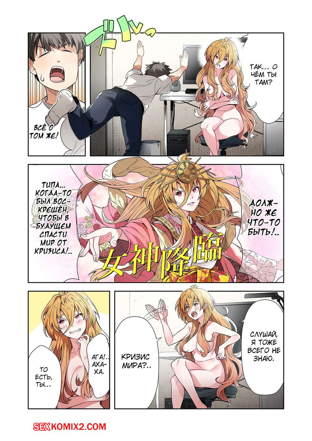 Порно комикс Левая рука богини. Отдайся же своей любовнице. Часть 2. MUGENUP Парень привыкает к наличию сексуальной блондинки у себя дома. Нельзя позволить, чтобы она постоянно была голой, поэтому парнишка повел девушку в магазин, чтобы купить ей одежду.