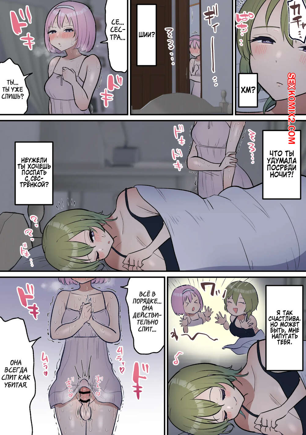 Порно комикс Старшая сестра притворяется спящей ради своей сестренки футанари. Fence 14 Юная девушка обладает большим членом и постоянно испытывает сильное возбуждение. Ее старшая сестра решила помочь сестренке, поэтому она притворяется спящей, чтобы младшая трахала ее пизденку.