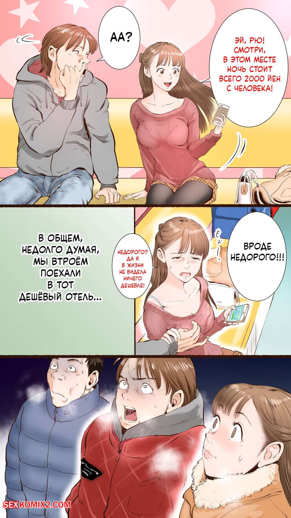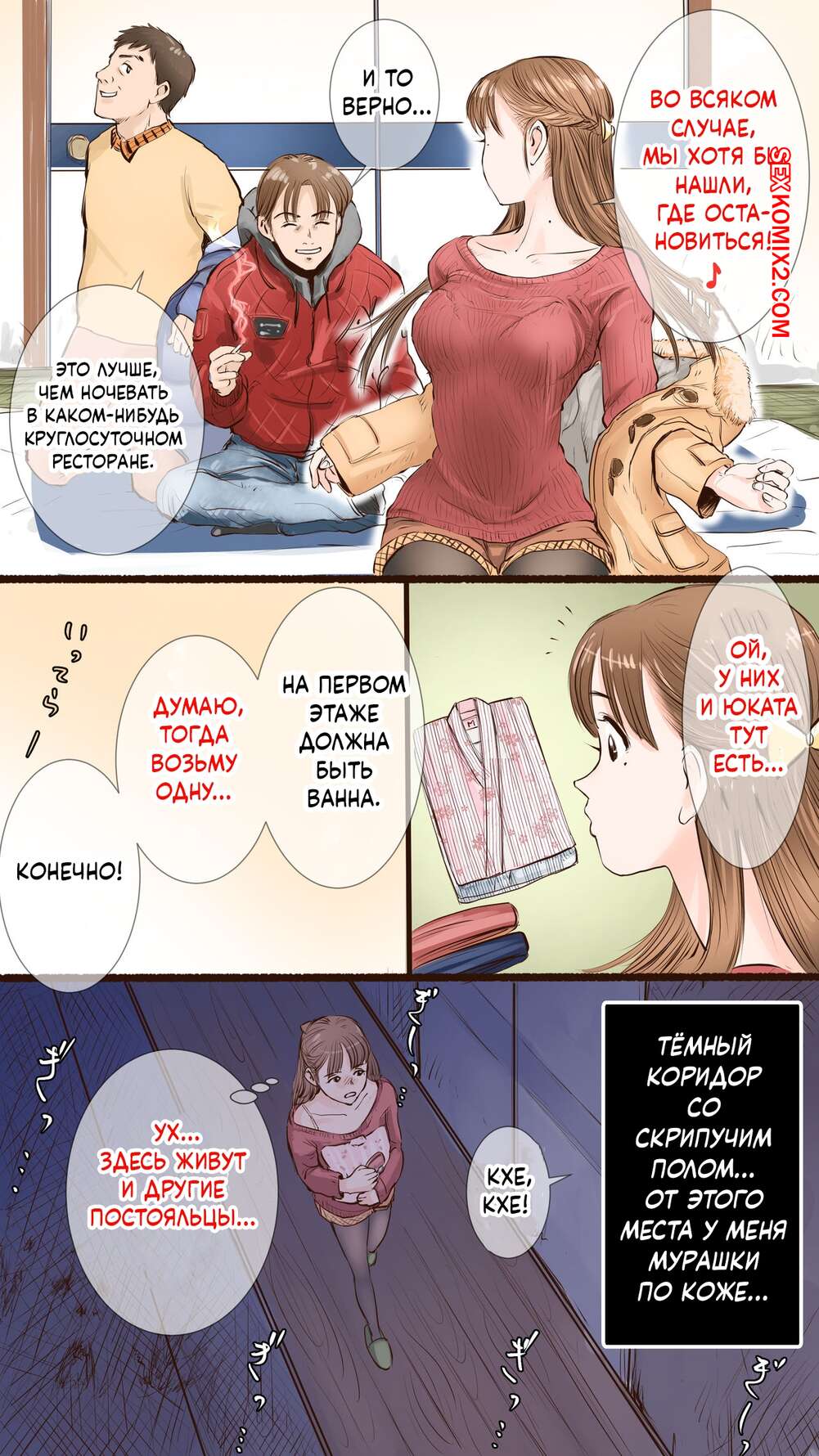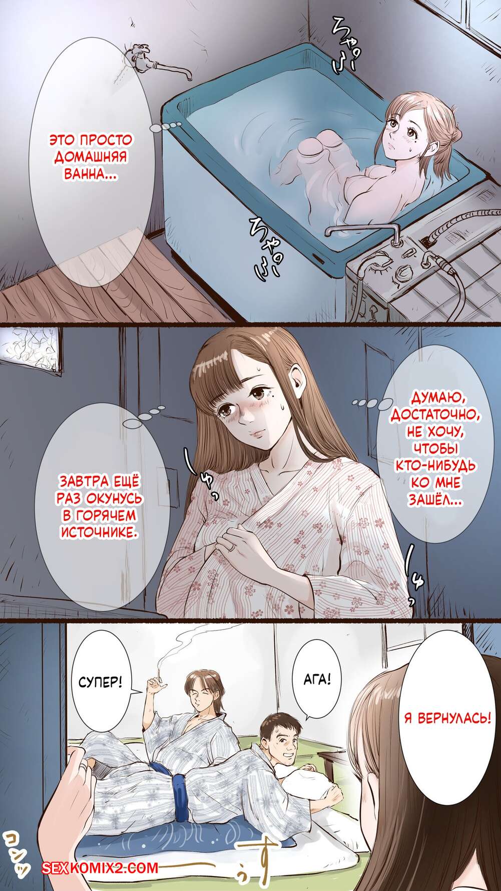 Порно комикс В гостинице с горячими источниками. Onsen Ryokan Hen. Aino Горячая брюнетка отправилась на горячие источники со своими парнем, где она привлекла внимание взрослого мужчины. Пока парень спал, мужик выебал красотку, доставив ей удовольствие.