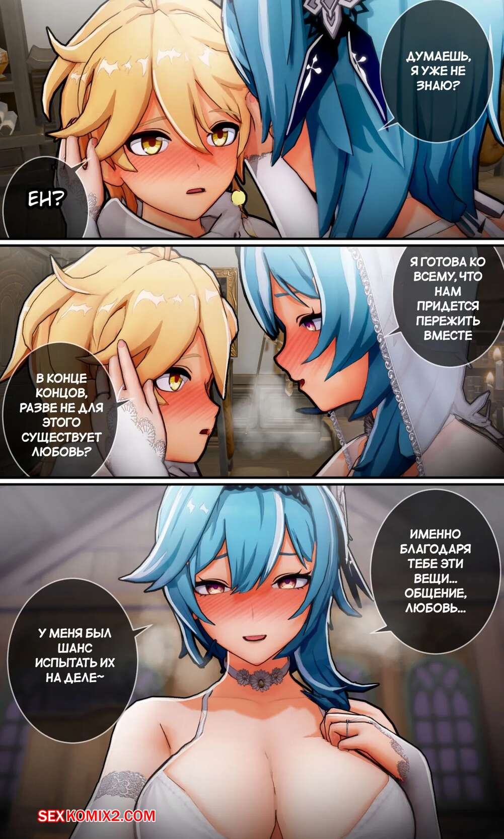 Порно комикс Genshin Impact. Я тебе нравлюсь. Часть 2. Do You Like Me. koikatsu. Горячая красотка Еула без ума от большого члена своего дружка Эфира. Девушка раздевается и соблазняет парня своим шикарным телом, после чего сосет его член и дает себя выебать.