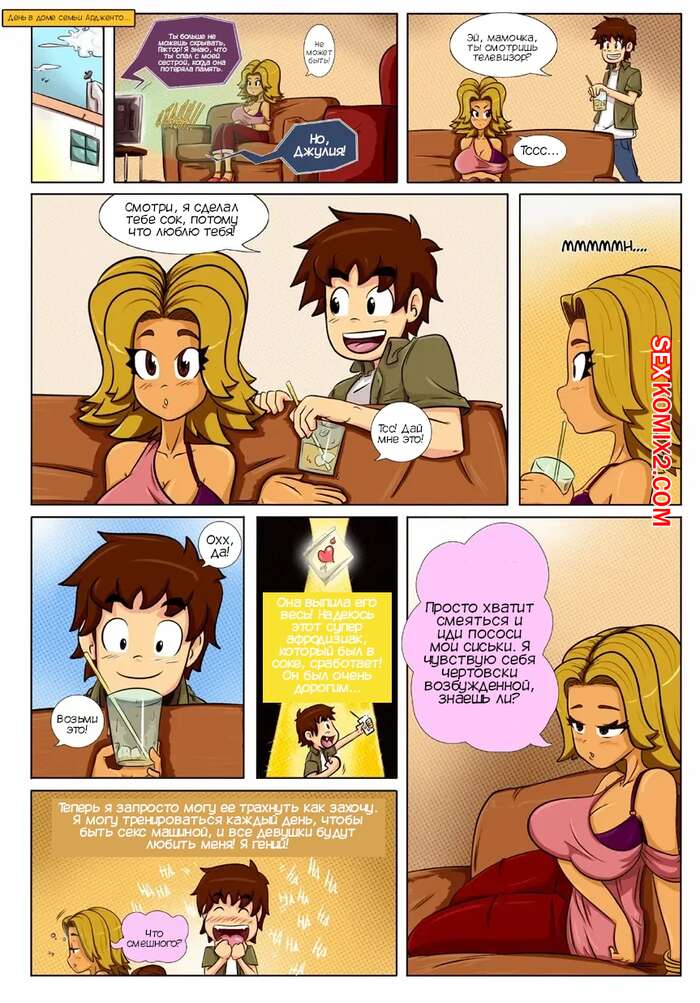 Порно комикс Семья Ардженто. Растерянная мамочка. The Argento Family. Confused Mommy. Crot Горячая милфа смотрела телевизор и ее сынок принес ей сок с добавкой, которая возбудила красотку. Мамочка разделась и отсосала хуй сына, после чего дала ему выебать свою задницу.