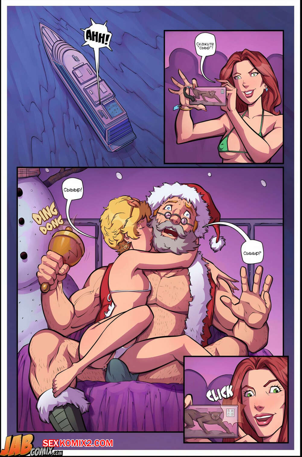 Порно комикс Круглая задница принцессы. Часть 7. Bubble Butt Princess. JABComix Мужик надел костюм Санты, чтобы не испортить праздник. К нему подошла сексуальная блондинка, которая стала соблазнять мужчину, желая получить поскорее свой подарок.
