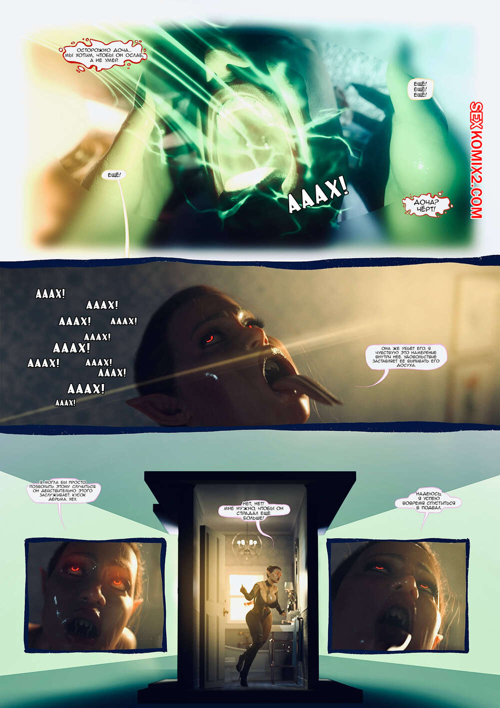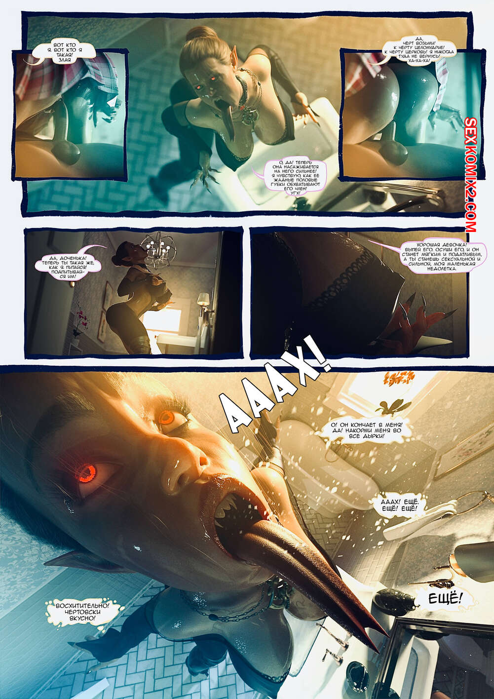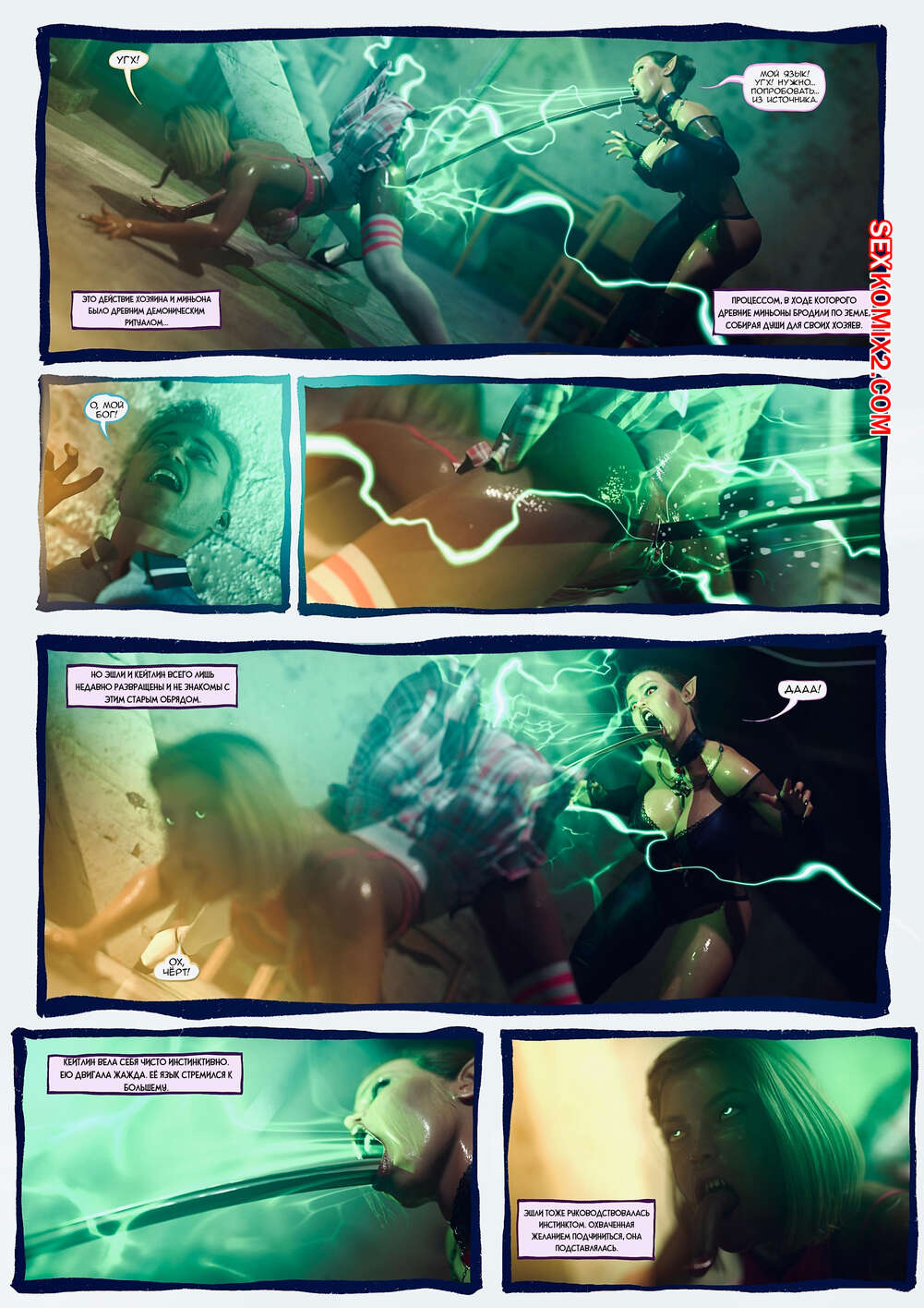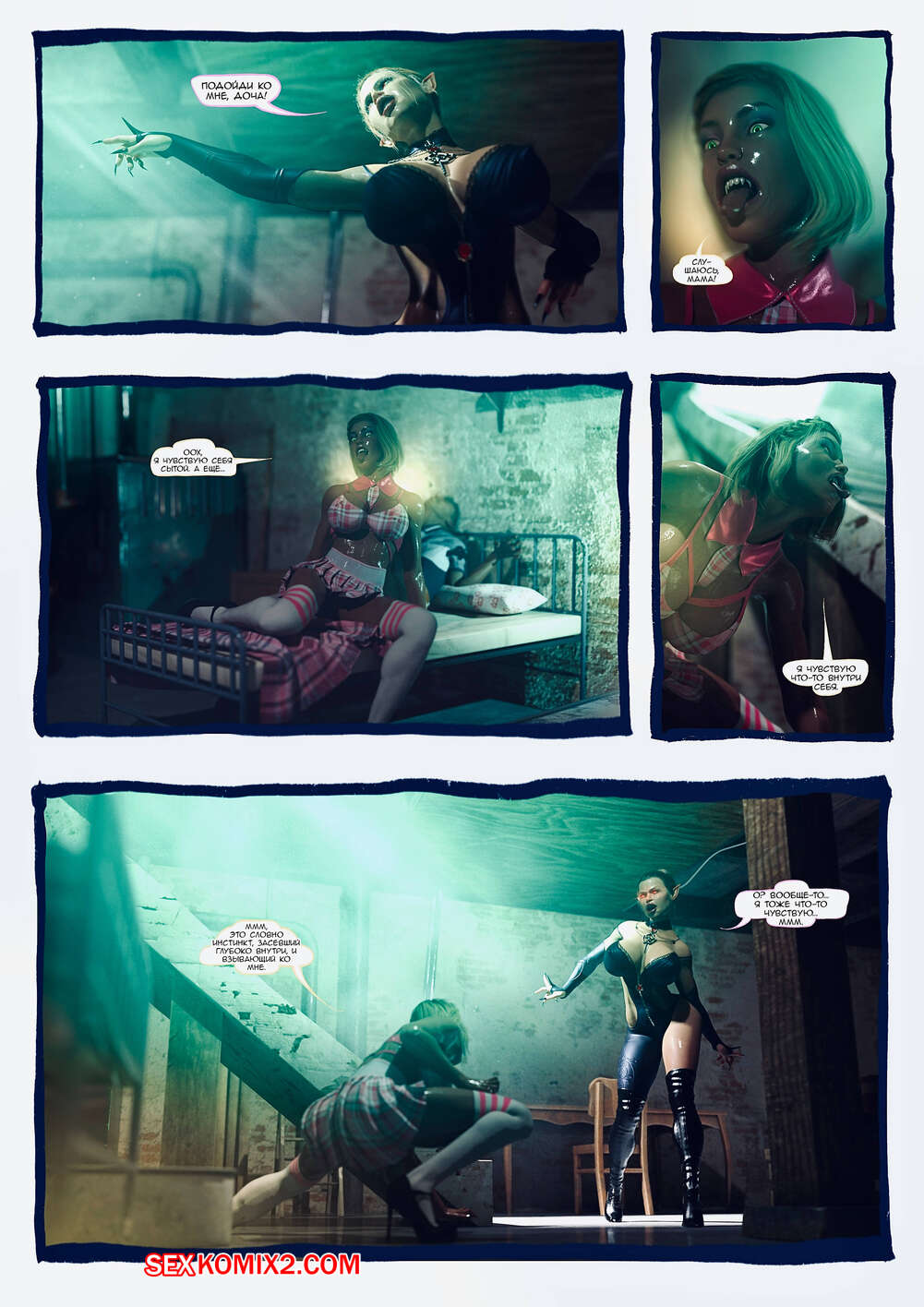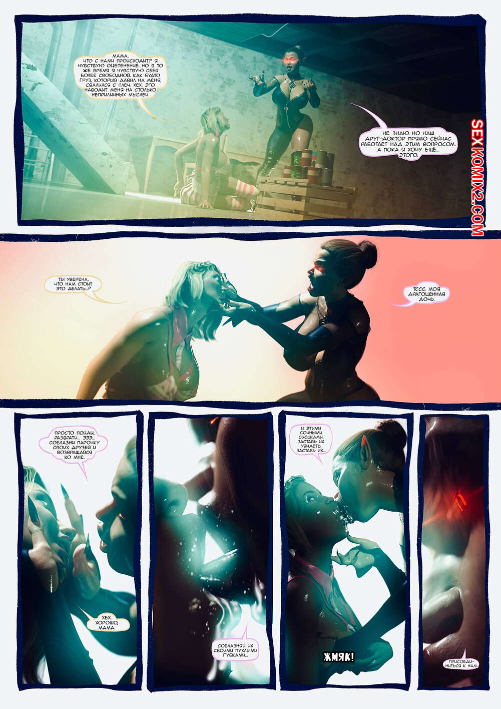 Порно комикс Ад манит. Части 13 и 14 и 15. Hell Beckons. JacktheMonkey Горячая милфа вампирша почувствовала сильное возбуждение и решила повеселиться с другой сучкой. Она подняла ее в воздух, после чего стала ласкать ее пизденку язычком.