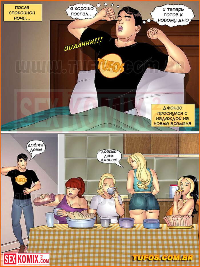 Порно комикс Тетя, кузины и племянник. Часть 2.