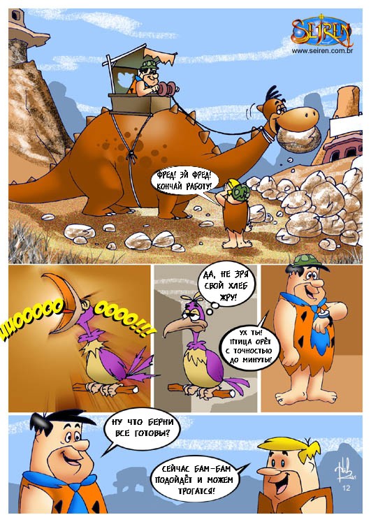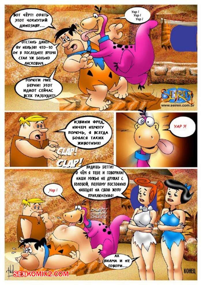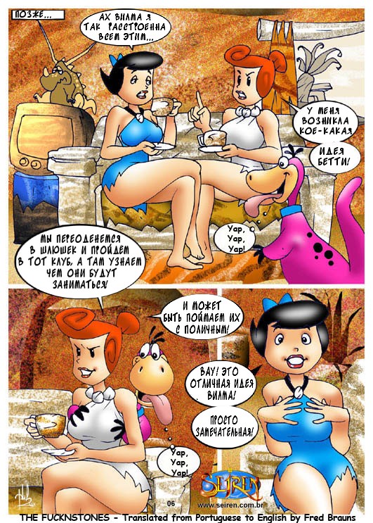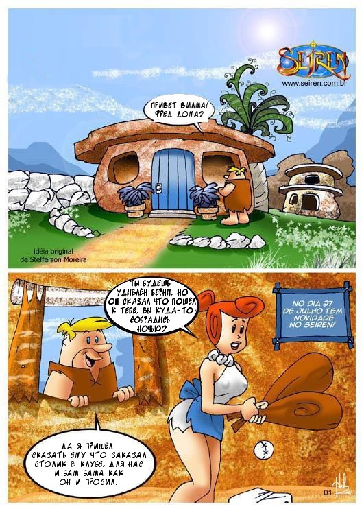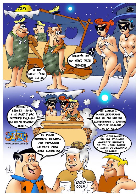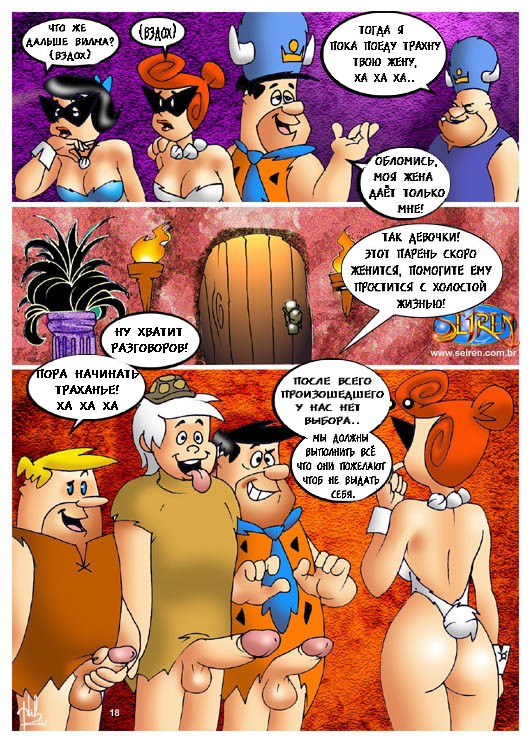 Порно комикс «Флинстоуны (The Flintstones)». Смотрите комикс онлайн пародия на знаменитый мультфильм. Берни и Фред собрались в тайне от своих жен сходить в ночной клуб, но случайно проболтались. И их сексапильные женщины решили тоже сходить в этот клуб, но чтобы мужья их не узнали, они надели маски. В то время, когда парни уже во всю веселились и прилично выпив, заказали проституток, им привели их жен. Охранник на входе по ошибке перепутал их со шлюхами. И мужья думаю, что это чужие девушки принялись трахать своих собственных жён.