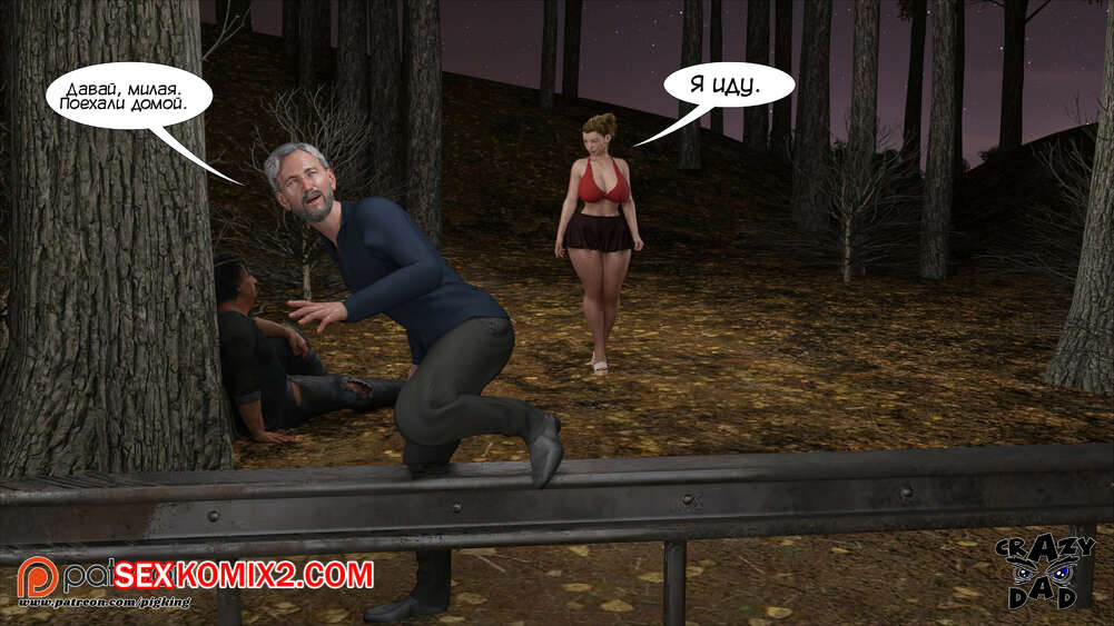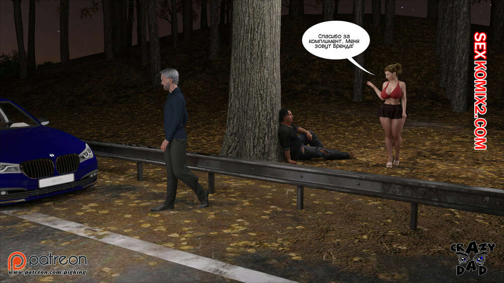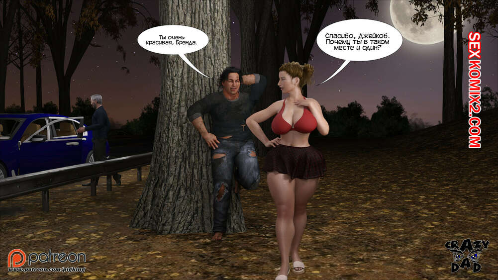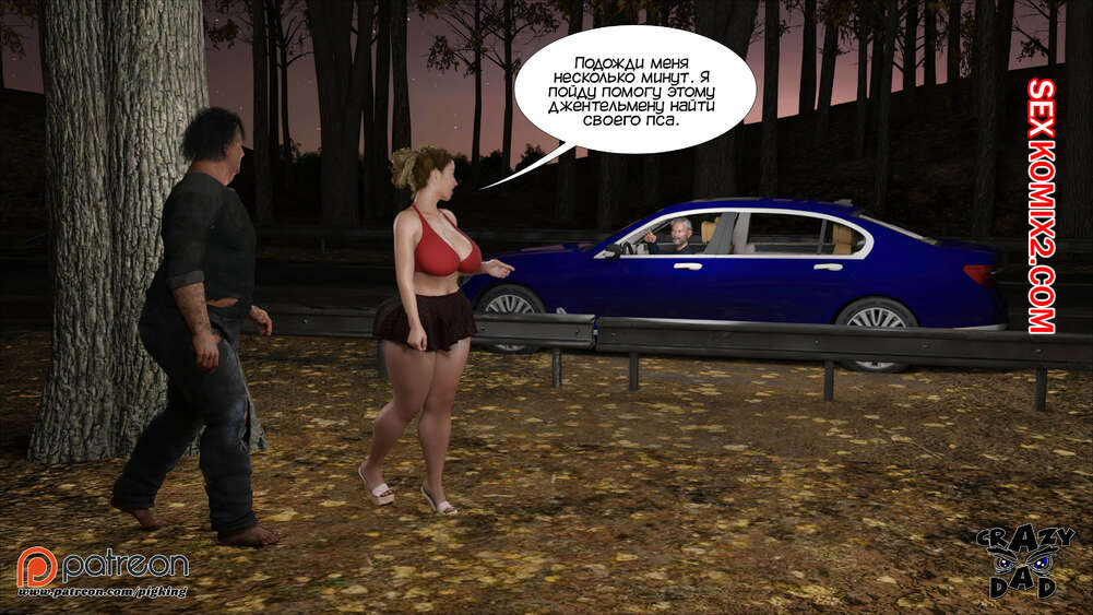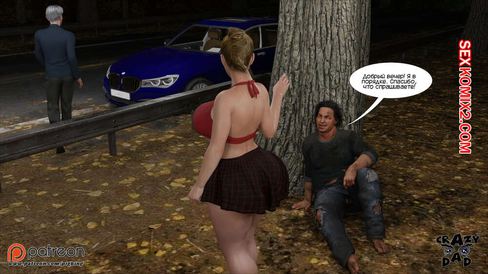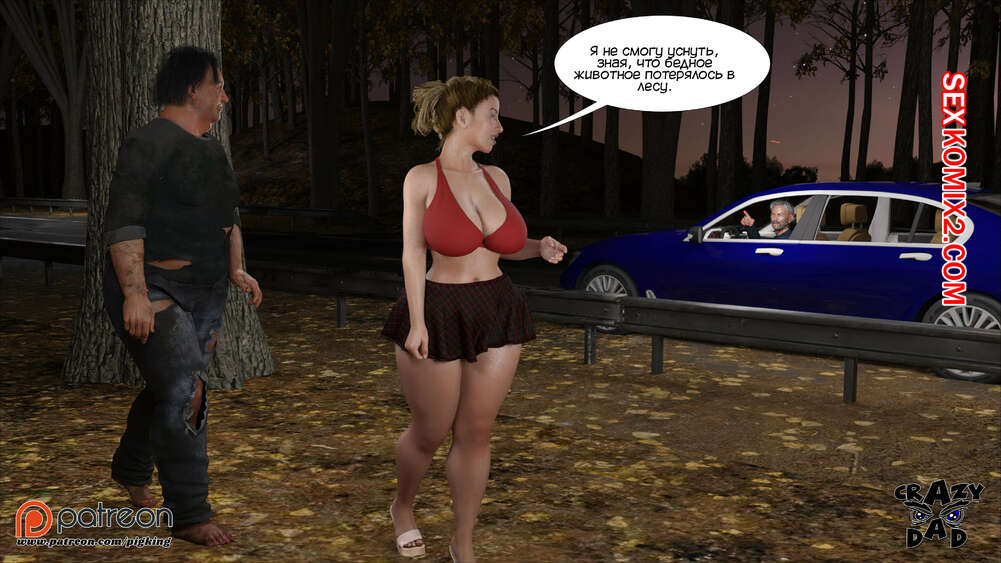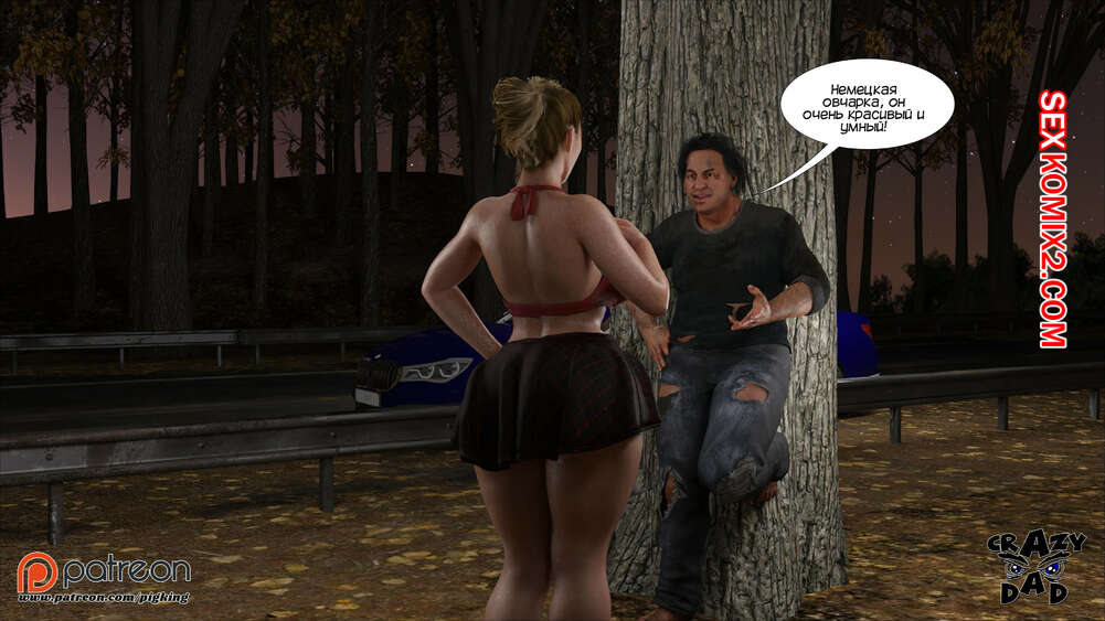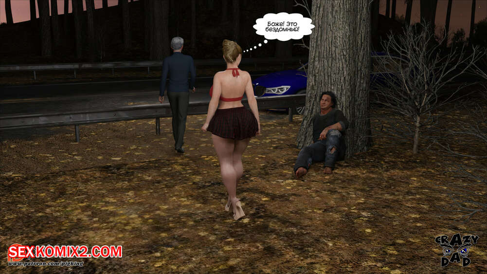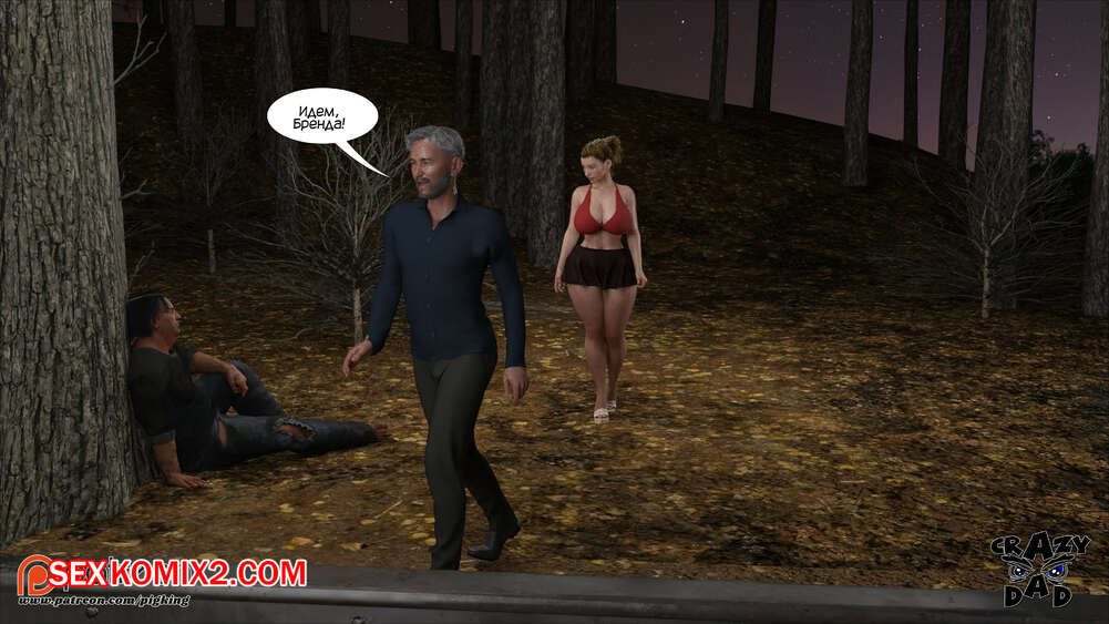 Порно комикс Свекр дома. Часть 40. Father In Law At Home. CrazyDad3D Горячая милфа Бренда наслаждается членом своего отца в лесу, но им пора возвращаться домой. Перед тем, как сесть в машину, красотка встречает бездомного парня и решает с ним повеселиться.